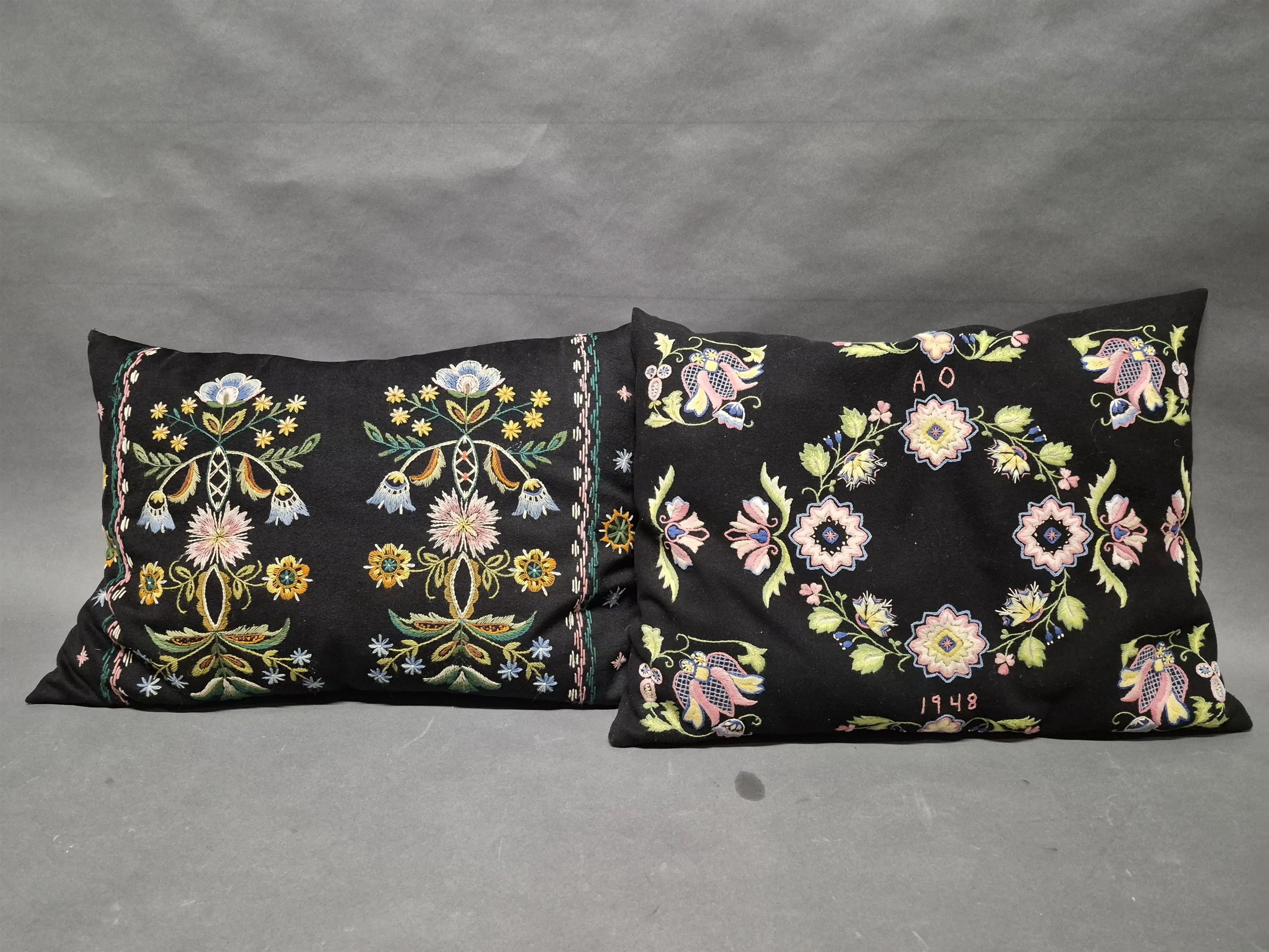 17607. Kuddar 2 st yllebroderi, mått 50 x 65 cm