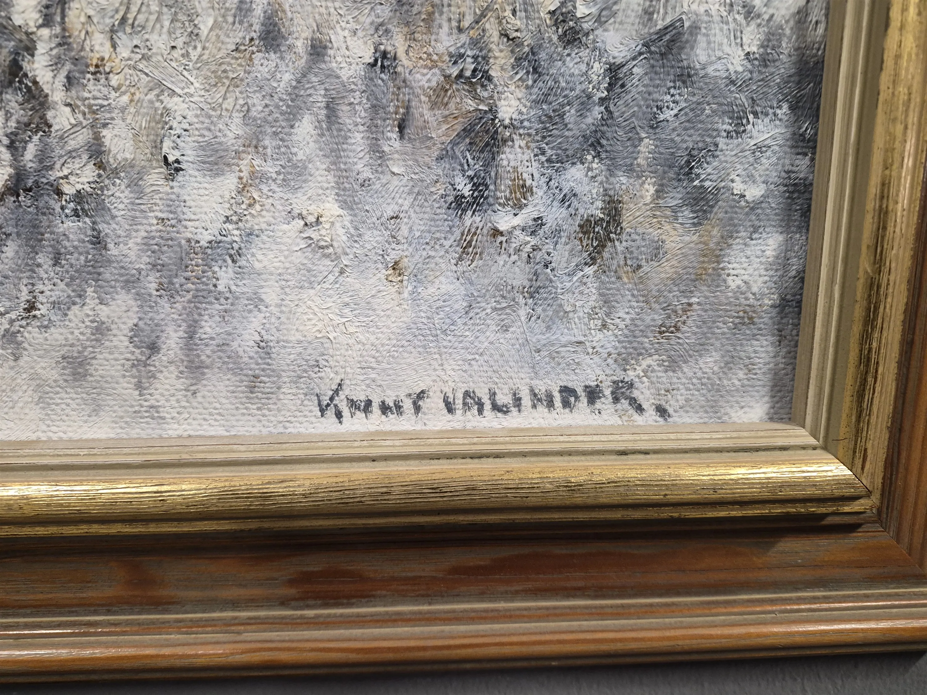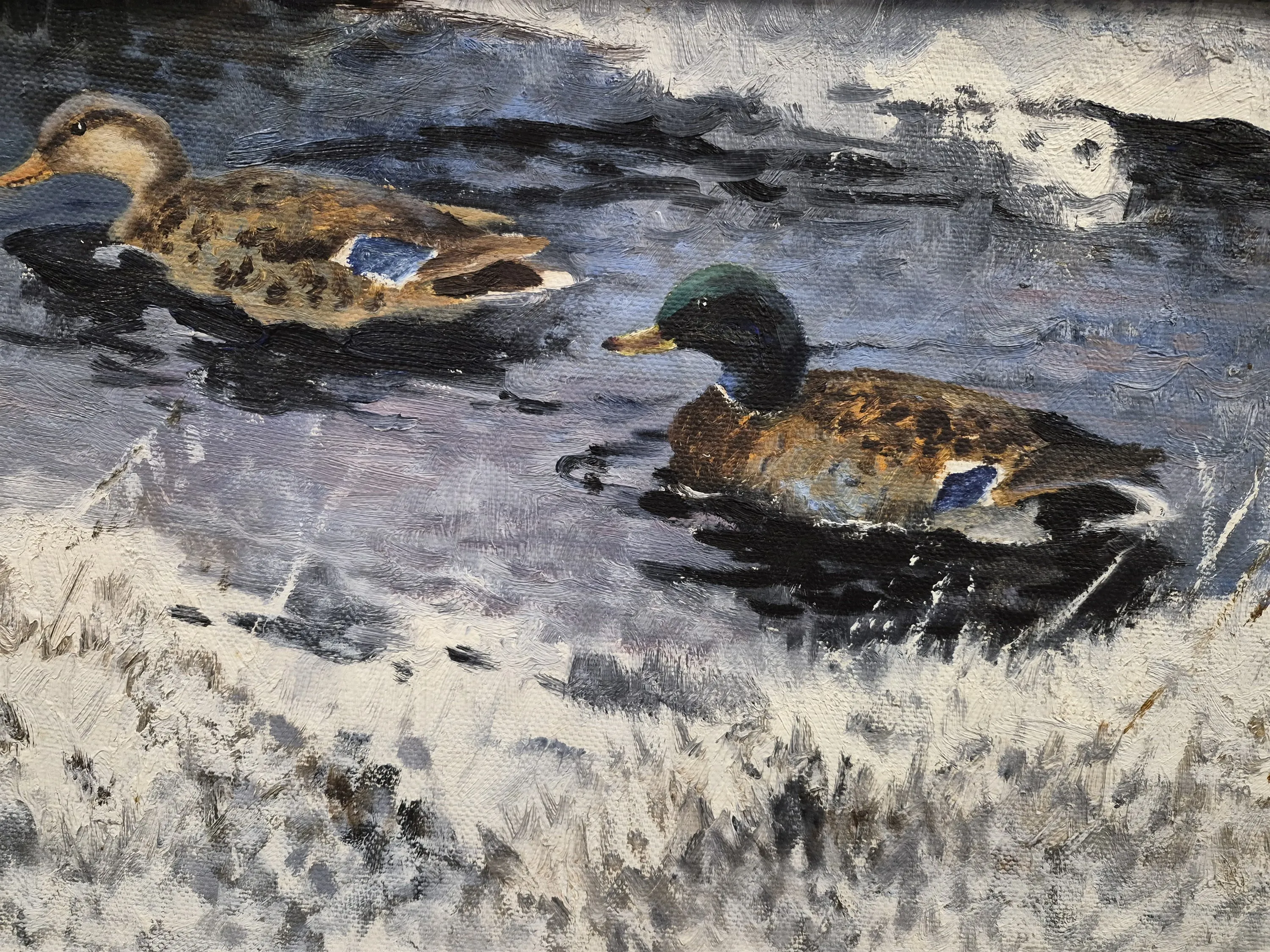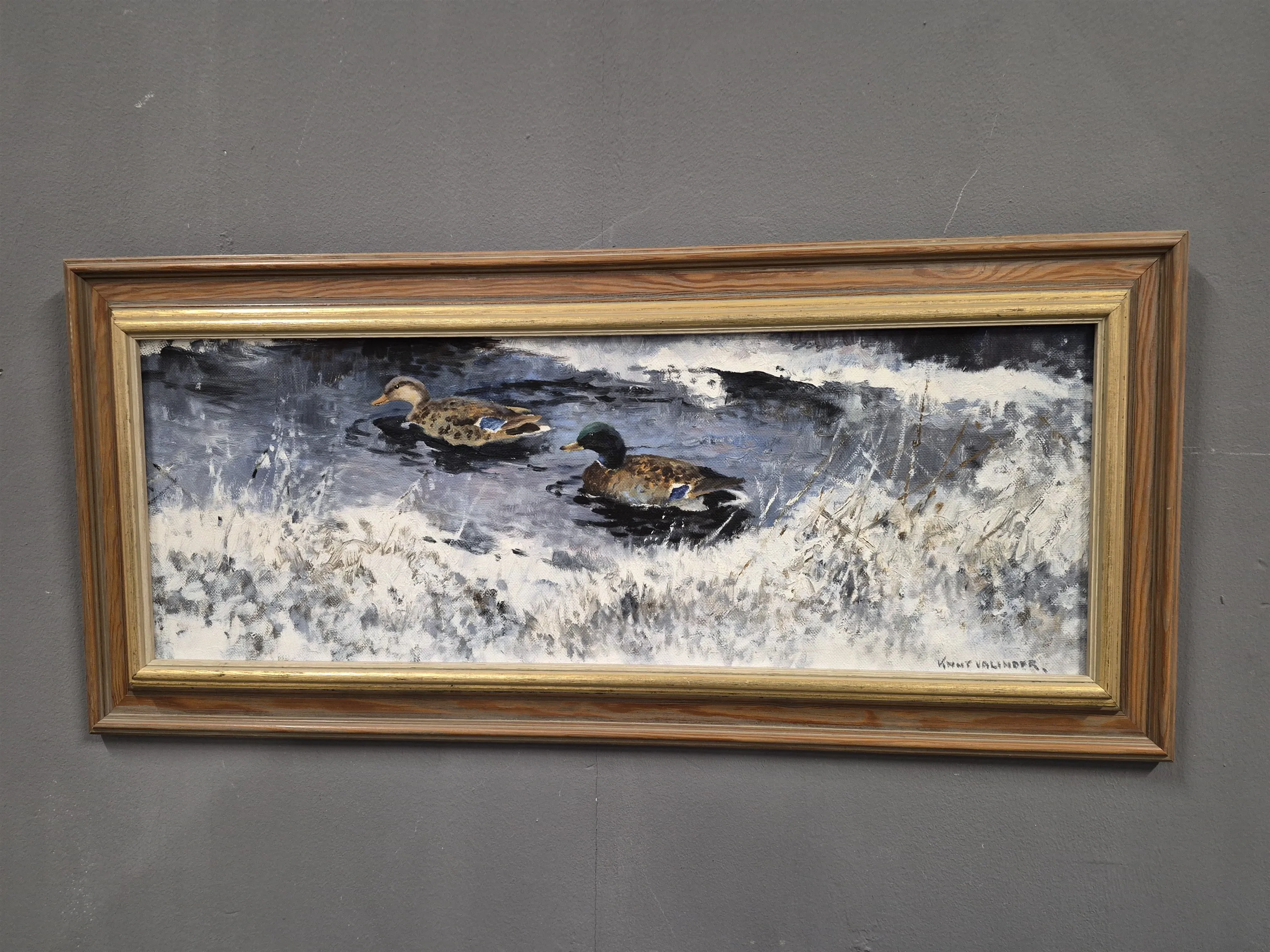 19754. Kurt Valinder, olja på duk, "Änder i vinter", mått 105 x 47 cm