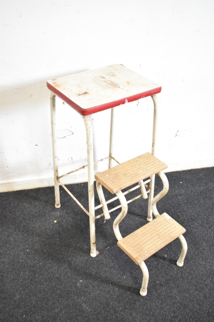 13450. Kökspall med trappa, retro höjd 62 cm, behöver tvättas, skav & fläckar finns