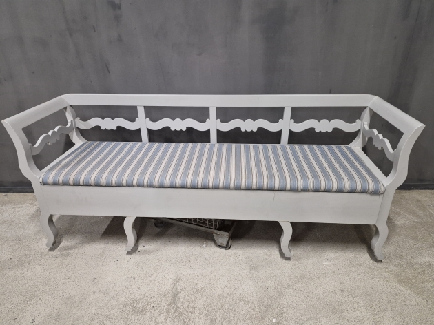16866. Kökssoffa, gråmålad, höjd 82 cm, längd 202 cm, bredd 65 cm