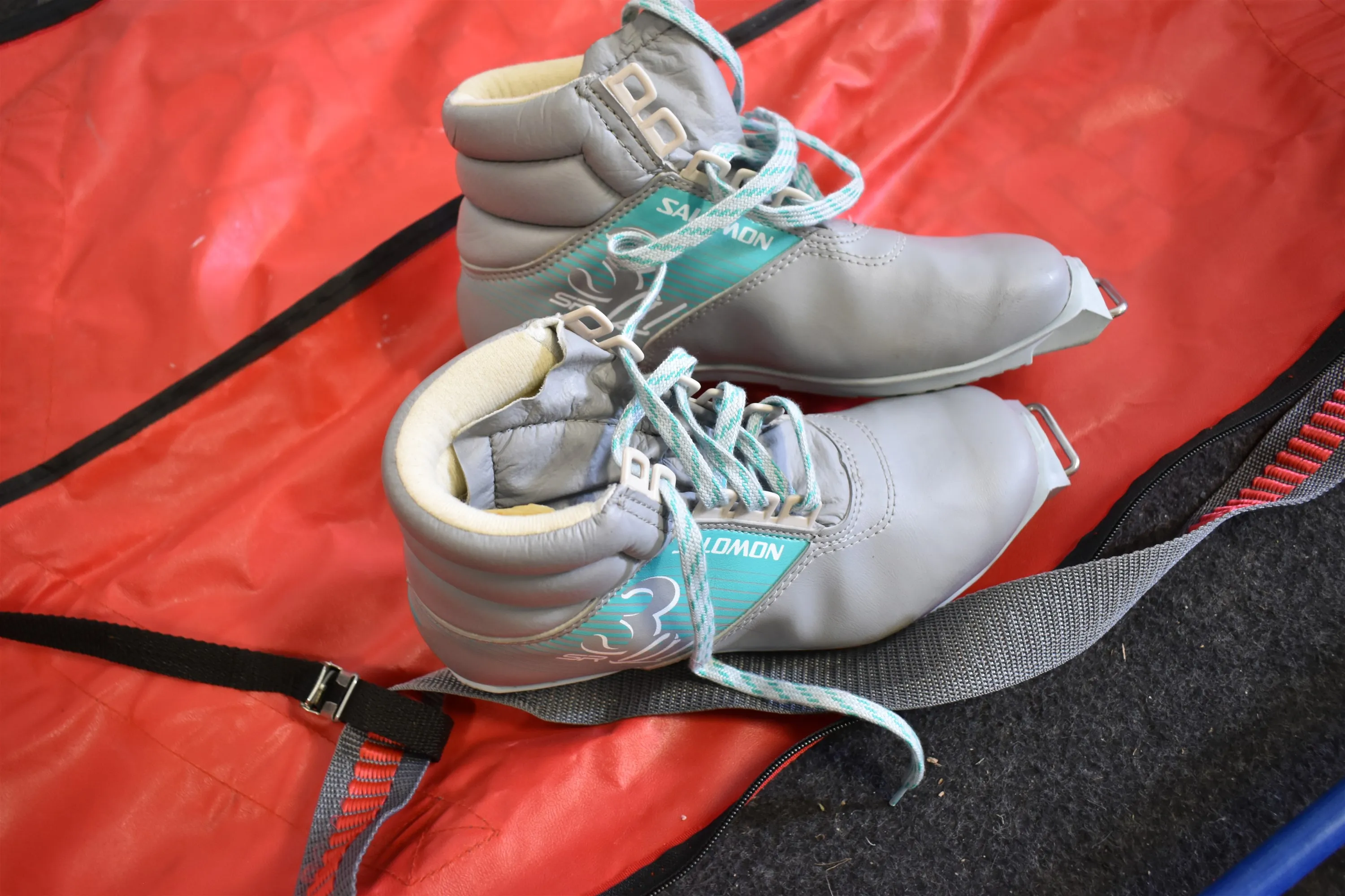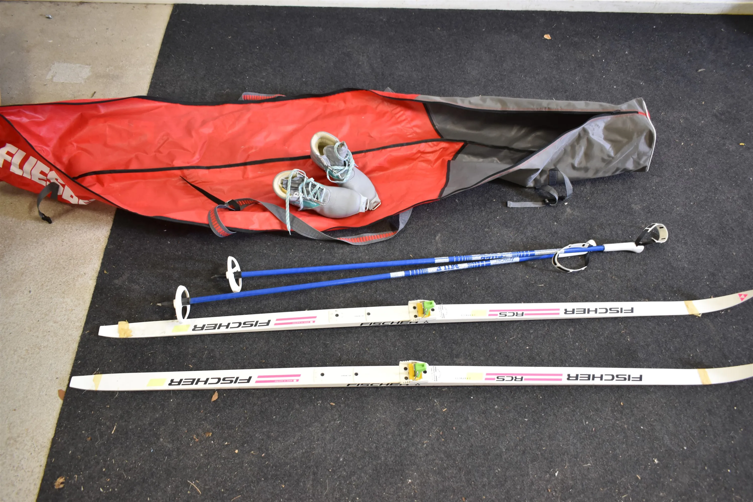 16837. Längdskidor stavar & pjäxor storlek 39
