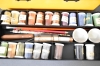 5241. Låda konstnärsmaterial, pigment, längd på låda 33 cm