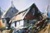 8126. Lars Hall olja på duk, "Fiskeläge", mått 70 x 80 cm