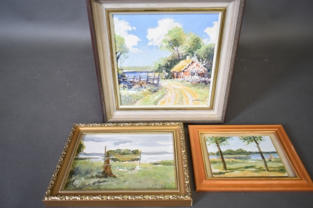 8146. Lars Möller 3 st akryl, "Landskap", största mått 30 x 30 cm