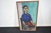 6379. Lennart Andersson olja på duk, "Flicka med fruktkotg", mått 95 x 55 cm