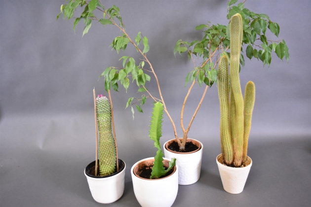 15694. Levande växter 4 st bla kaktusar, högsta höjd 100 cm