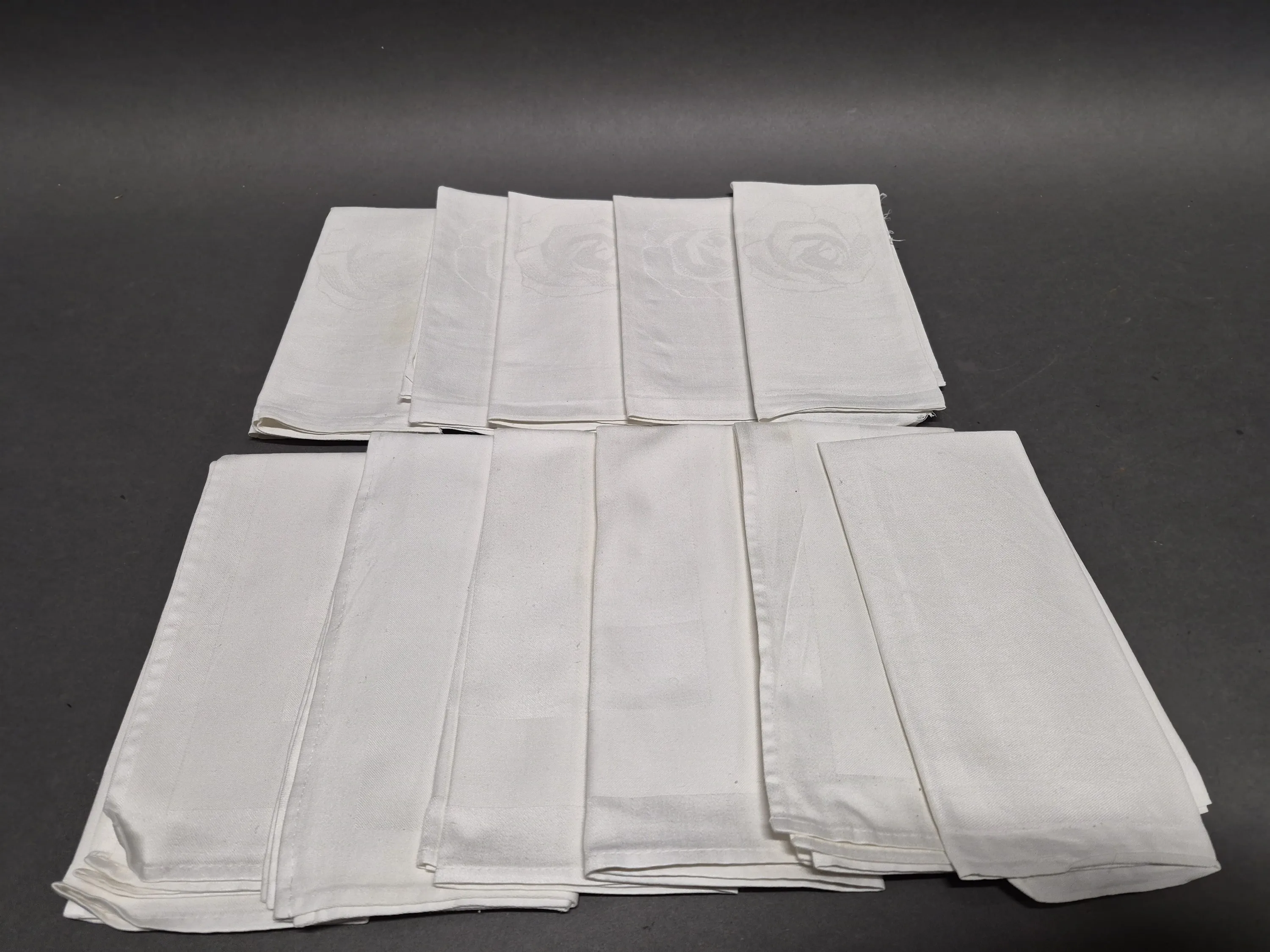 18821. Linneservetter 6+5 st mått 45x41 cm, missfärgningar och kantslitage finns