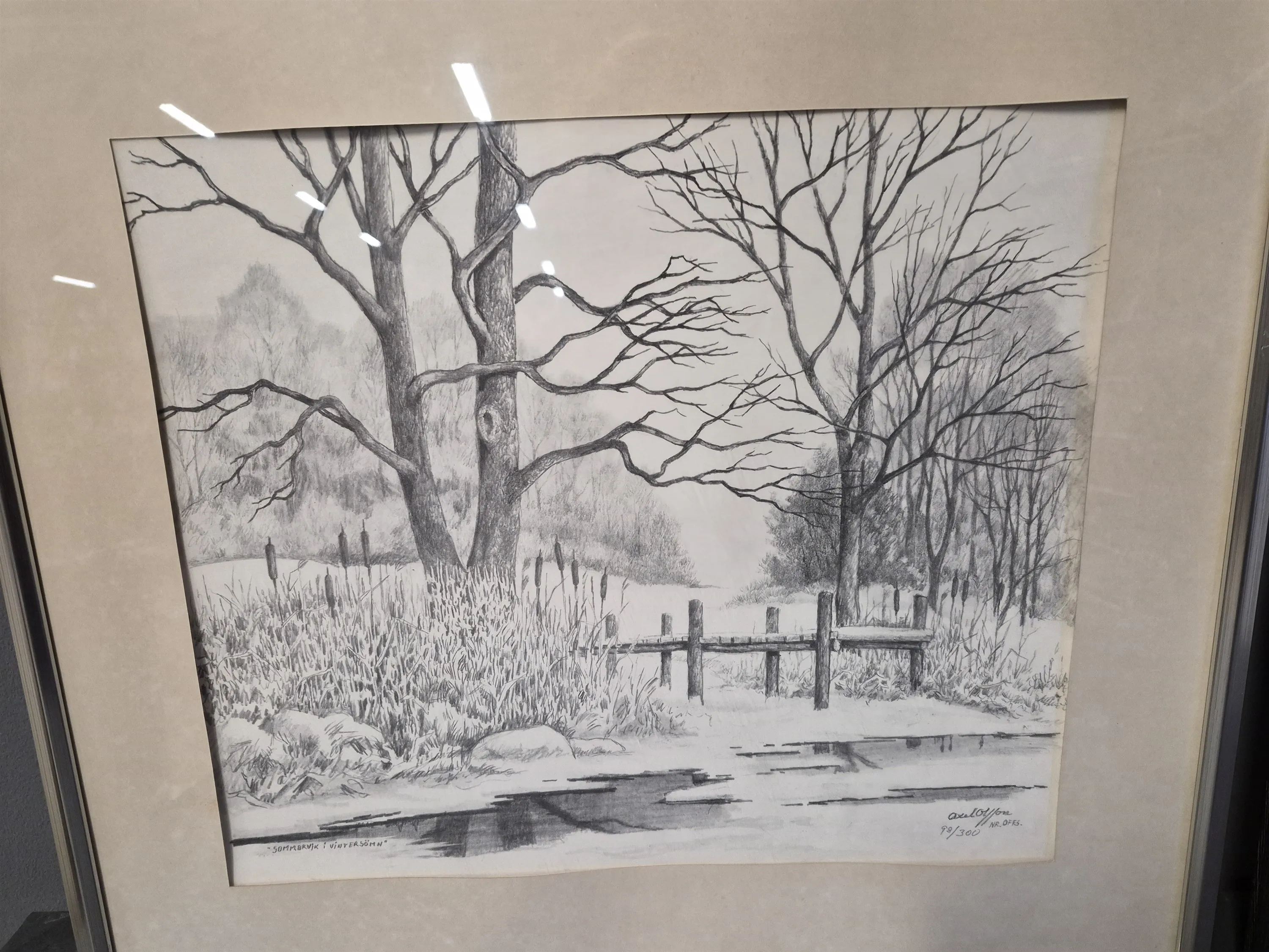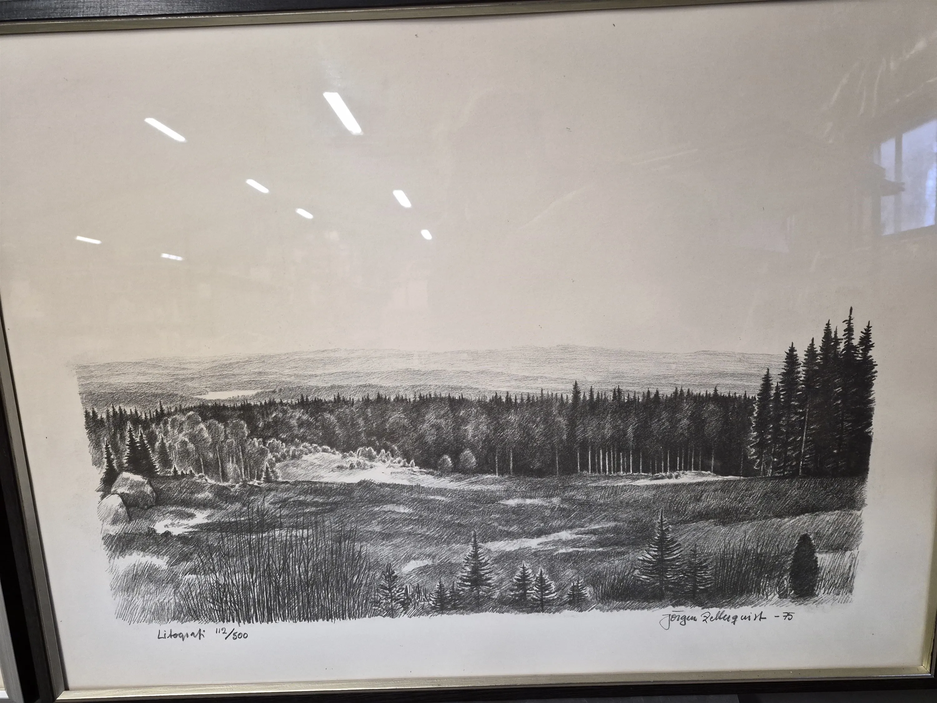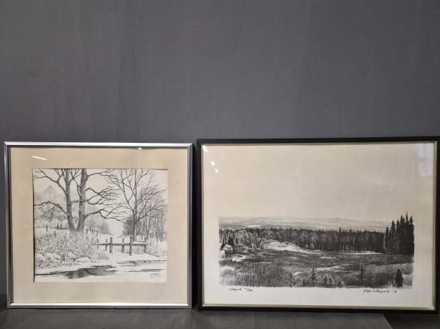 19478. Litografier 2 st bla Axel Olsson "Sommarvik i vintersömn", största mått 75x56 cm
