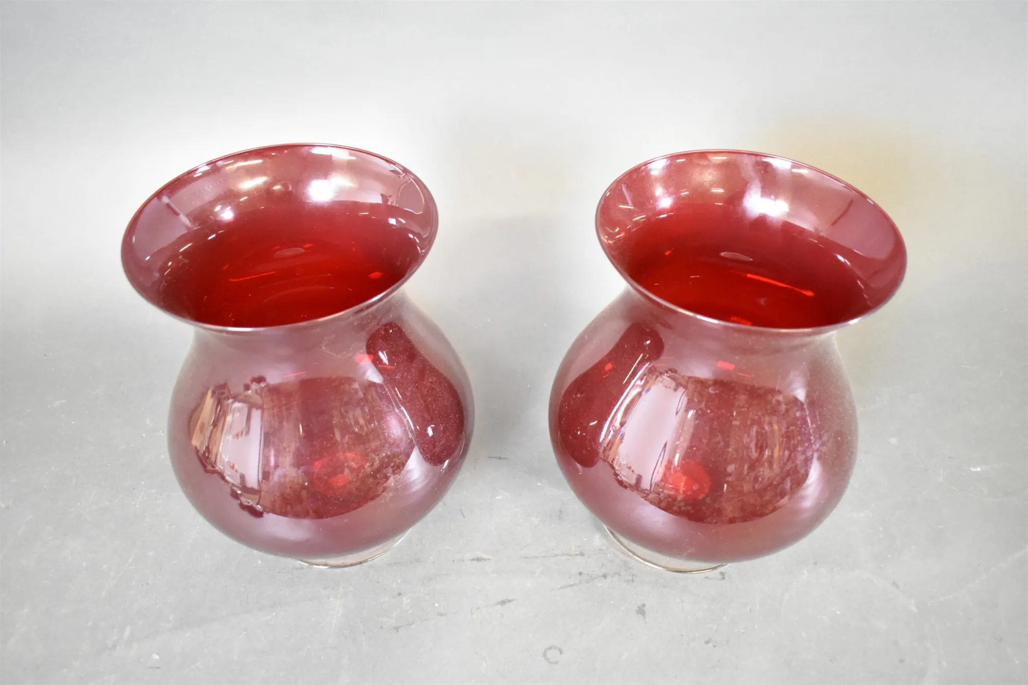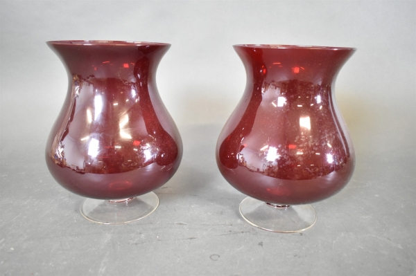 10559. Ljushållare röd ton med transparant fot, 1 par, höjd 31 cm