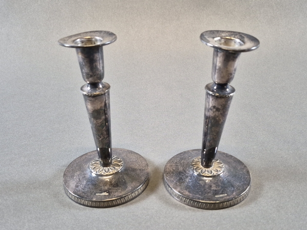 20050. Ljusstakar 1 par silver, höjd 15 cm, fyllda total vikt 371 gram