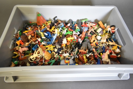 6600. Låda med blandade småleksaker i plast, längd på låda 60 cm