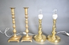 4009. Mässingljusstakar 1 par och bordslampor 1 par, högsta höjd 38 cm