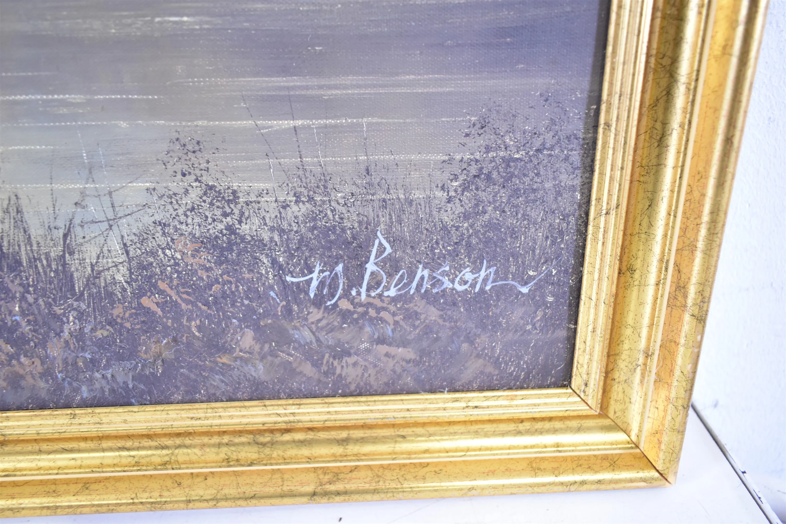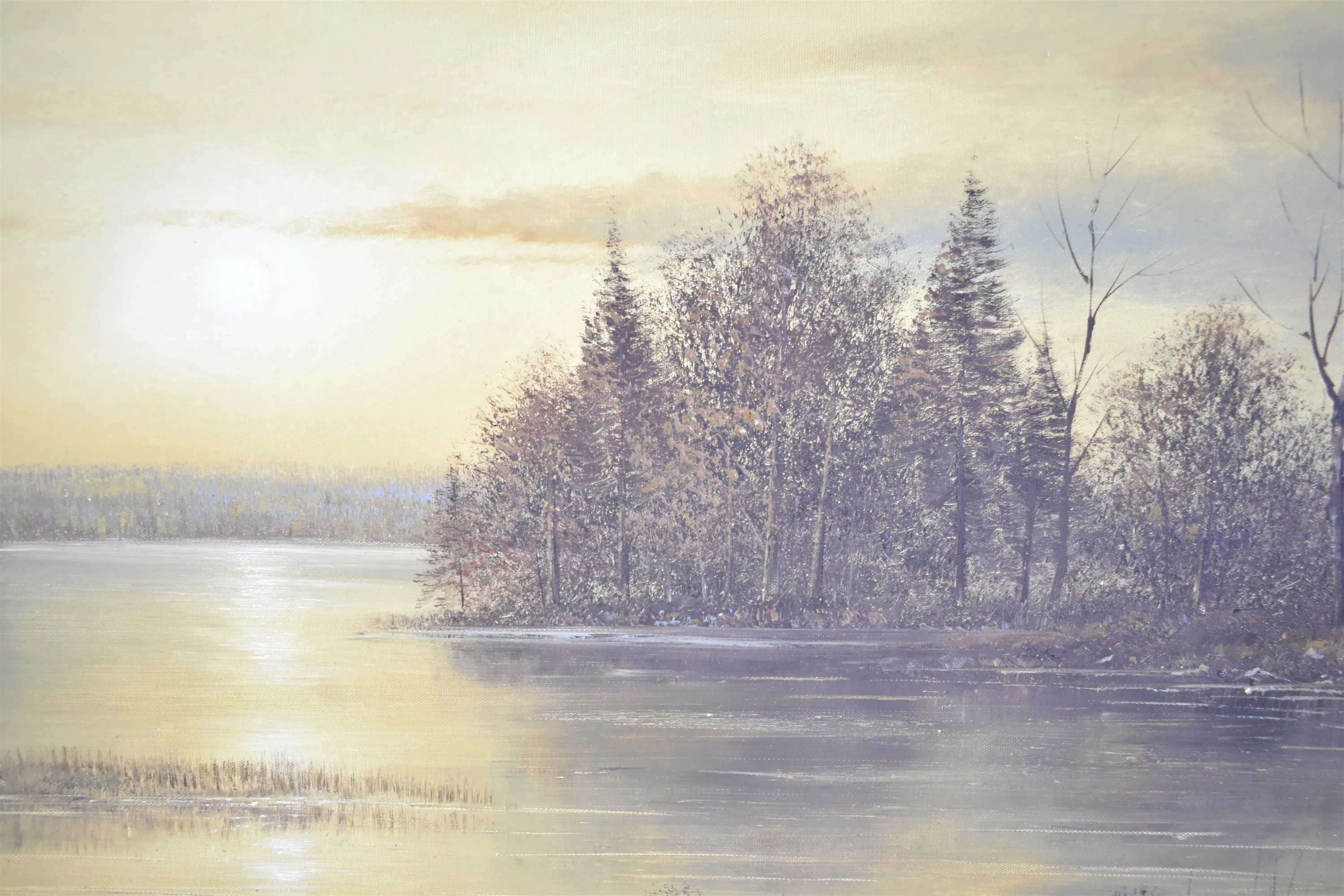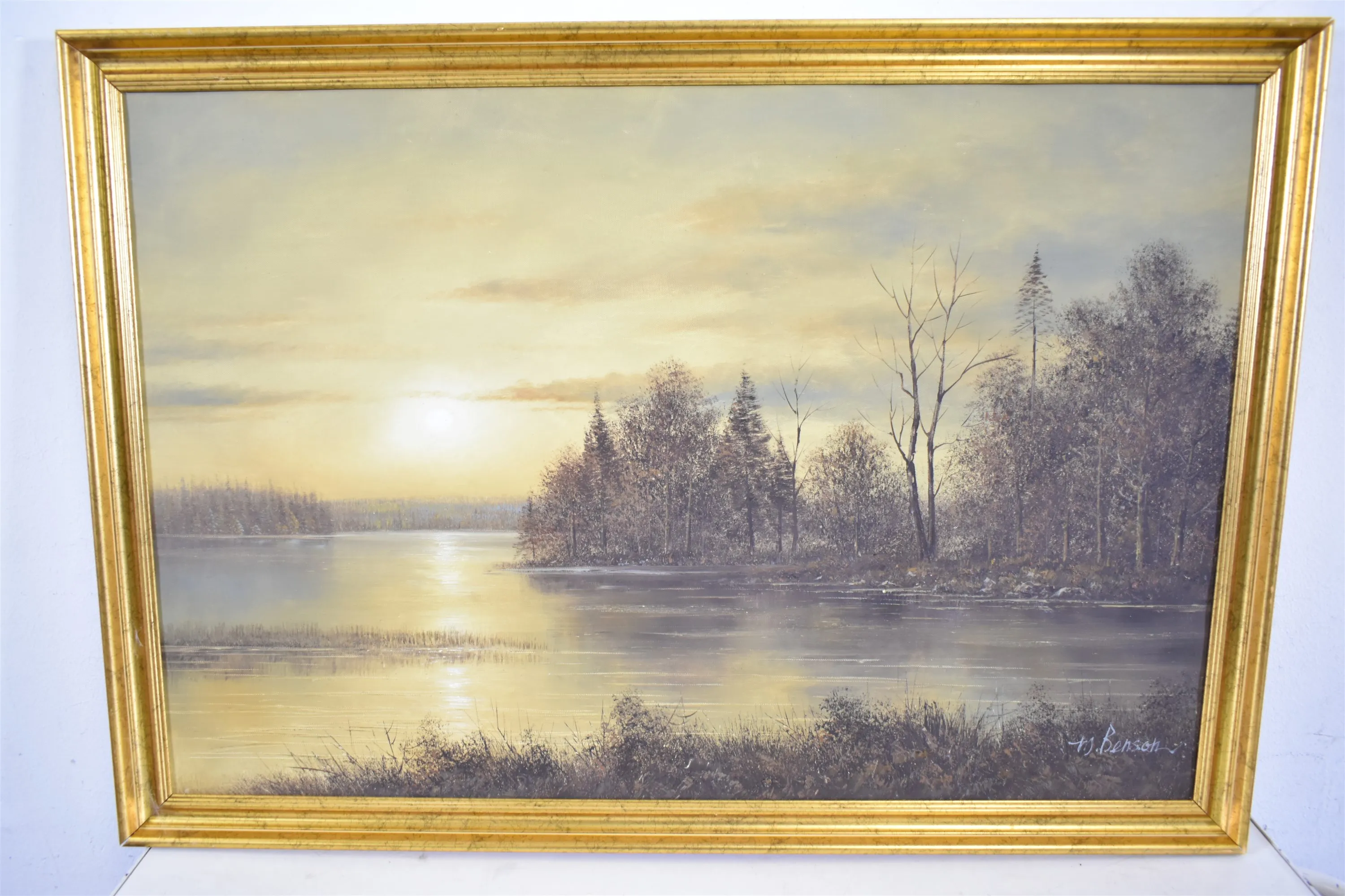 15095. M.Benson olja på duk, "Sjö med träd", mått 69 x 99 cm