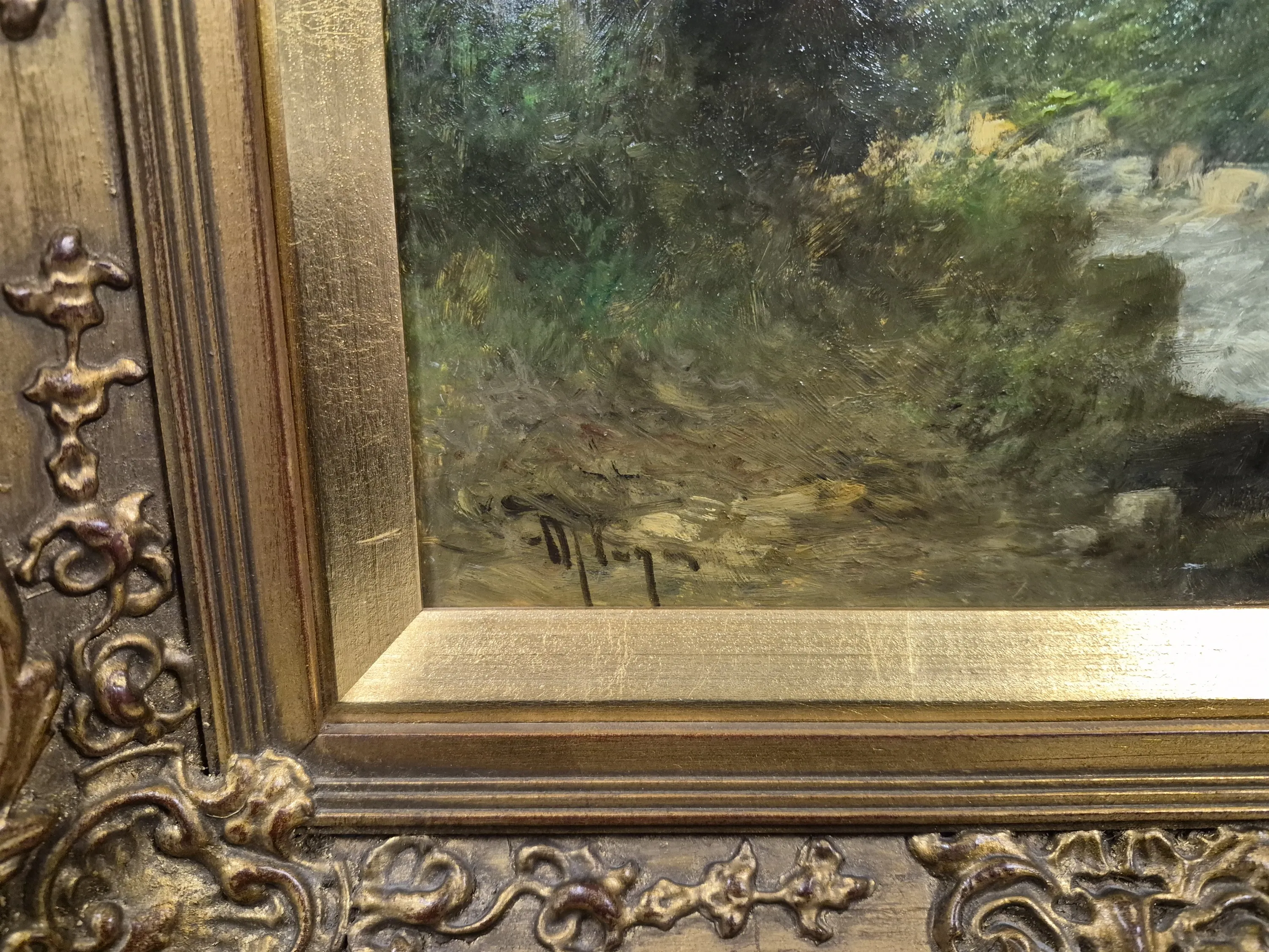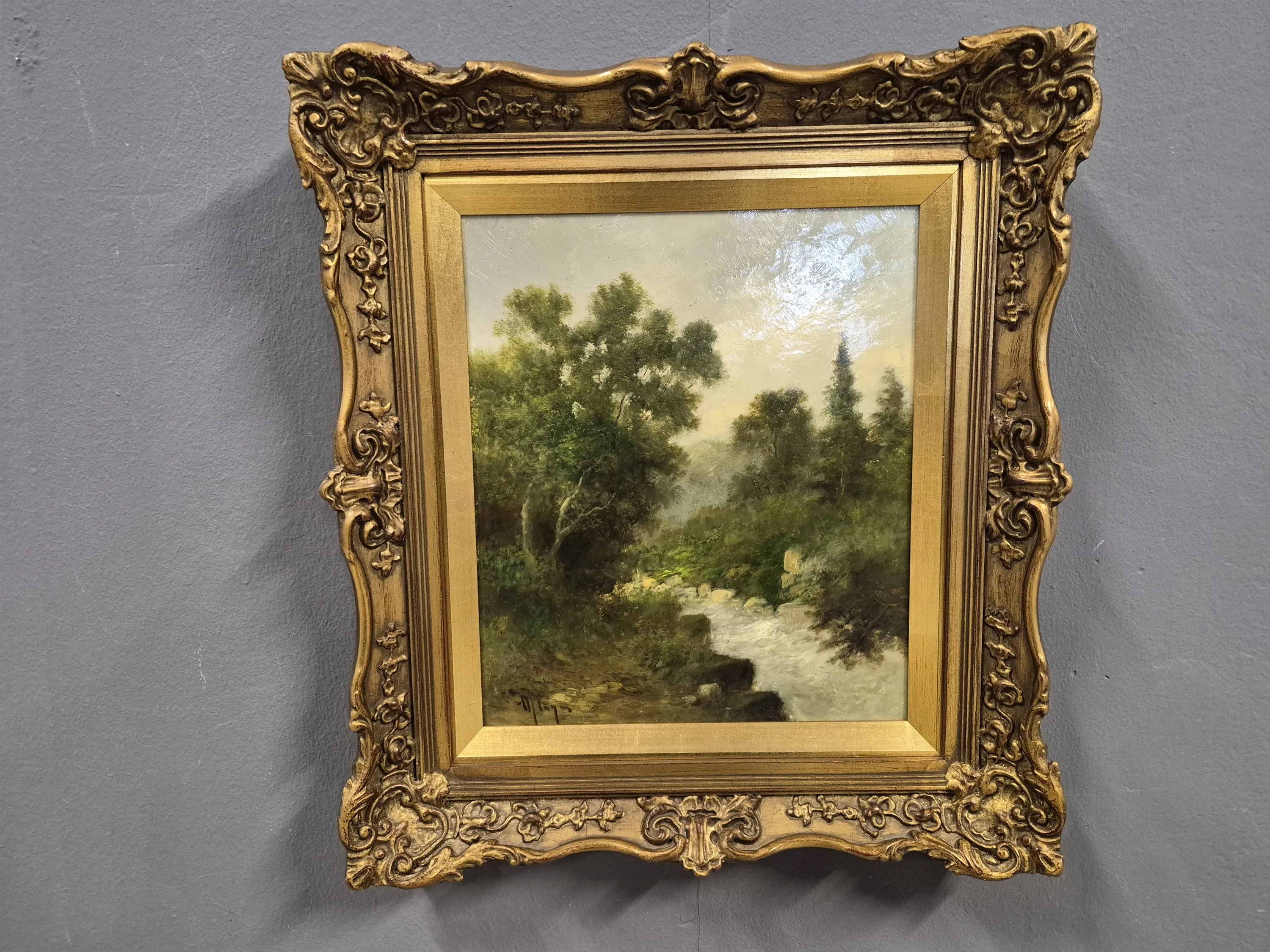 20358. Maler Weger, olja på pannå, "Vattenfall", mått 44 x 39 cm
