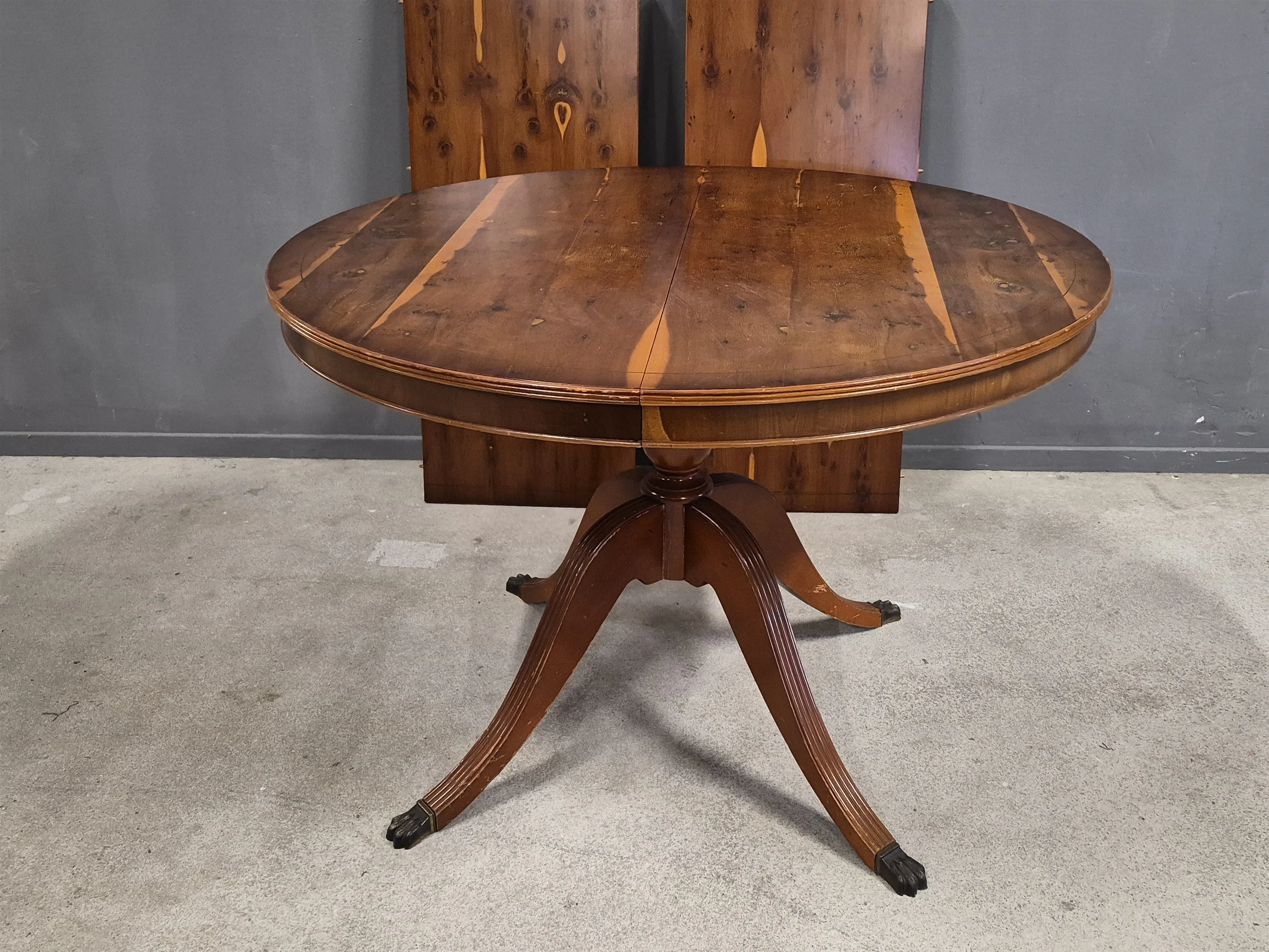 20223. Matbord med 2 iläggsskivor, Idegran Engelsk stilhöjd 76 cm, diameter 107 cm