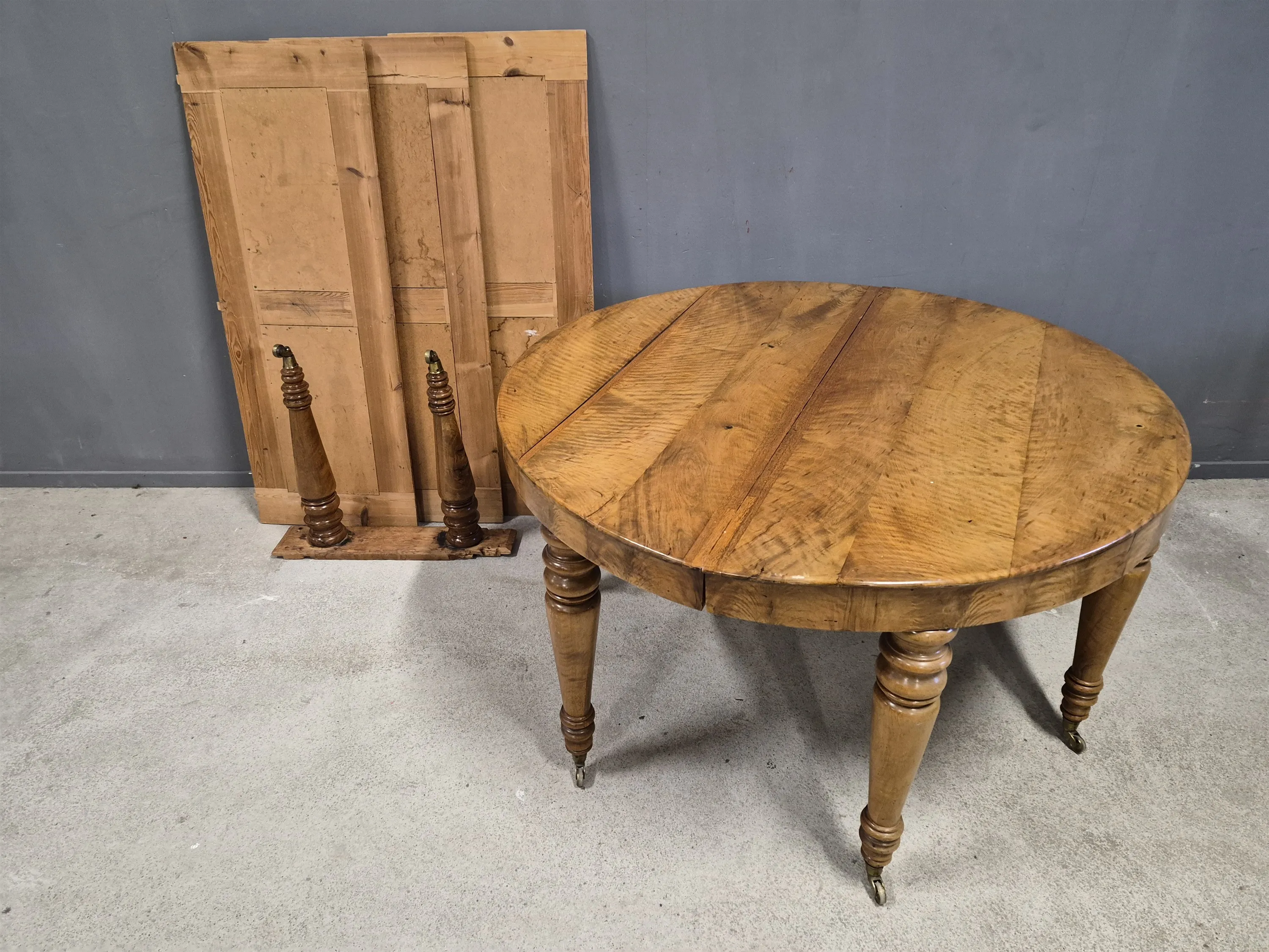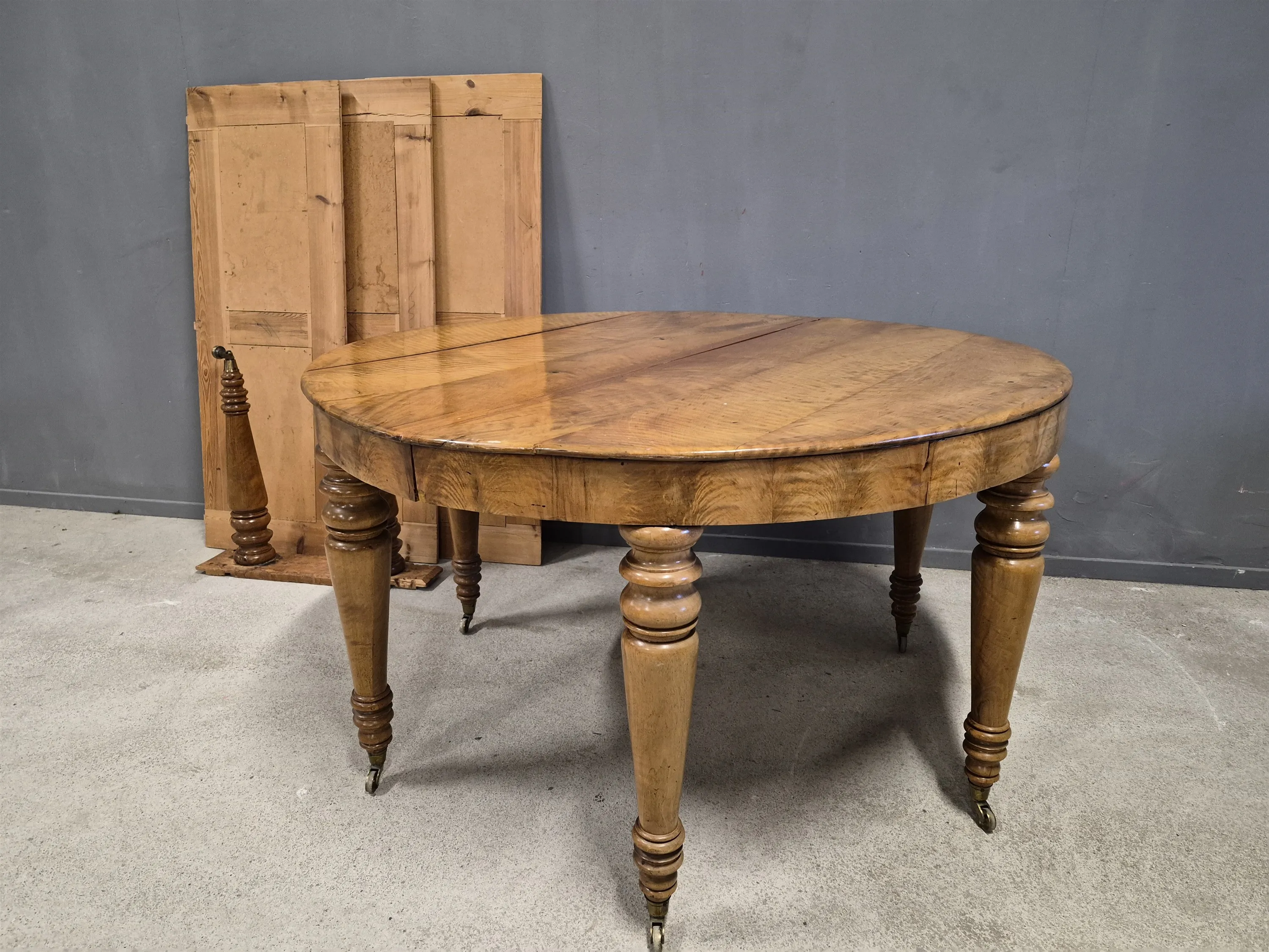 19108. Matbord, sent 1800-tal, 3 iläggskivor & extraben höjd 75 cm, diameter 130 cm