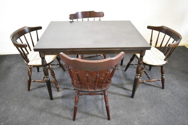 12879. Matgrupp 5 delar, Nesto och Stocka, höjd på bord 75 cm, längd 110 cm till 160 cm, bredd 80 cm