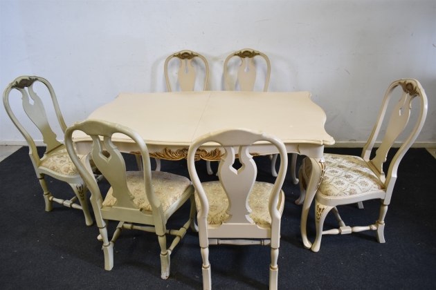 12980. Matgrupp 7 delar, Rokokostil, mått på bord 73 x 140 x 84 cm