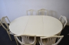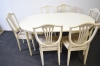 649. Matgrupp Gustaviansk, 7 delar + iläggsskiva mått 48 cm x 110 cm, höjd bord 73 cm, längd 160 cm, bredd 110 cm, höjd stol 94 cm
