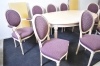 Böjd bord 78 cm, mått 110 x 160 cm, skvor 49 cm, stolar 100 cm