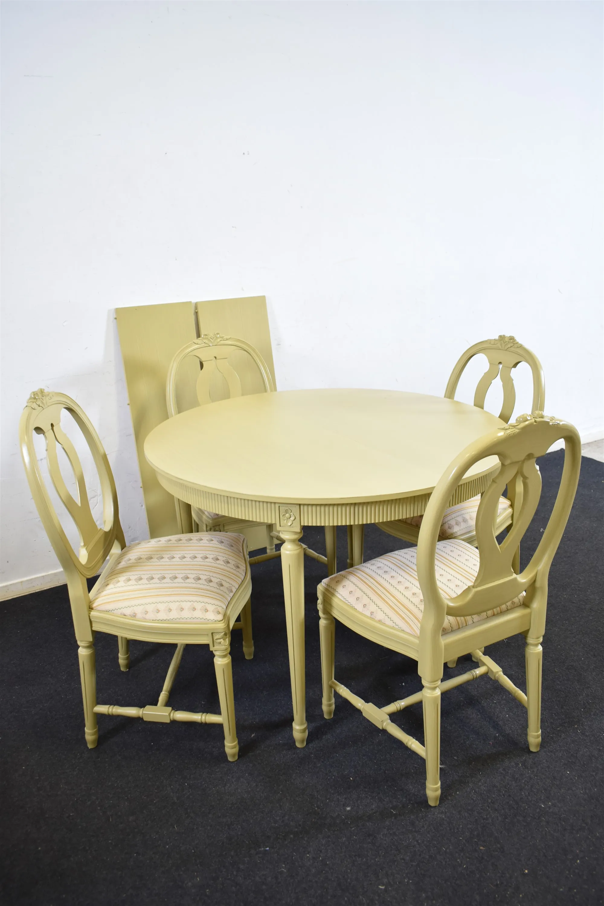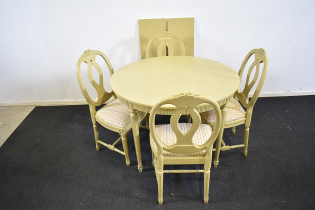 15453. Matgrupp, Gustaviansk stil, höjd bord 74 cm, diameter 105 cm