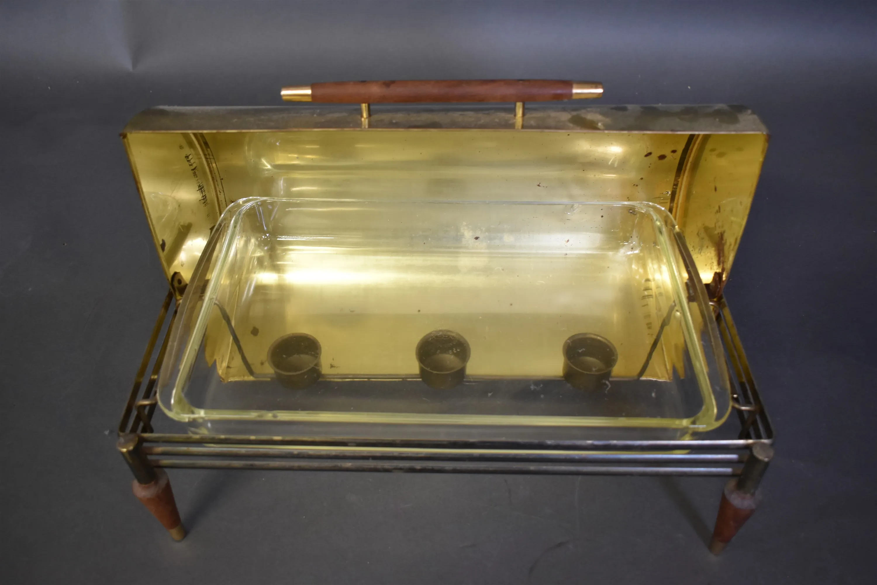 9140. Matkantin med ljushållare, mässing, mått 42 x 30 cm, höjd 24 cm