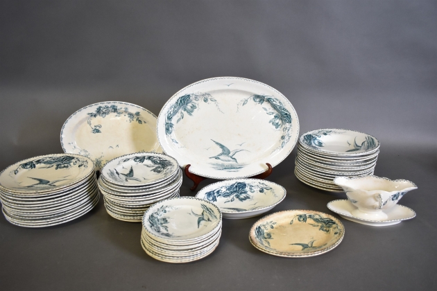 16104. Matservis Göteborgs Porslinfabrik "Tärna" 62 delar, krackeleringar och åldersslitage finns, längsta mått 44 cm
