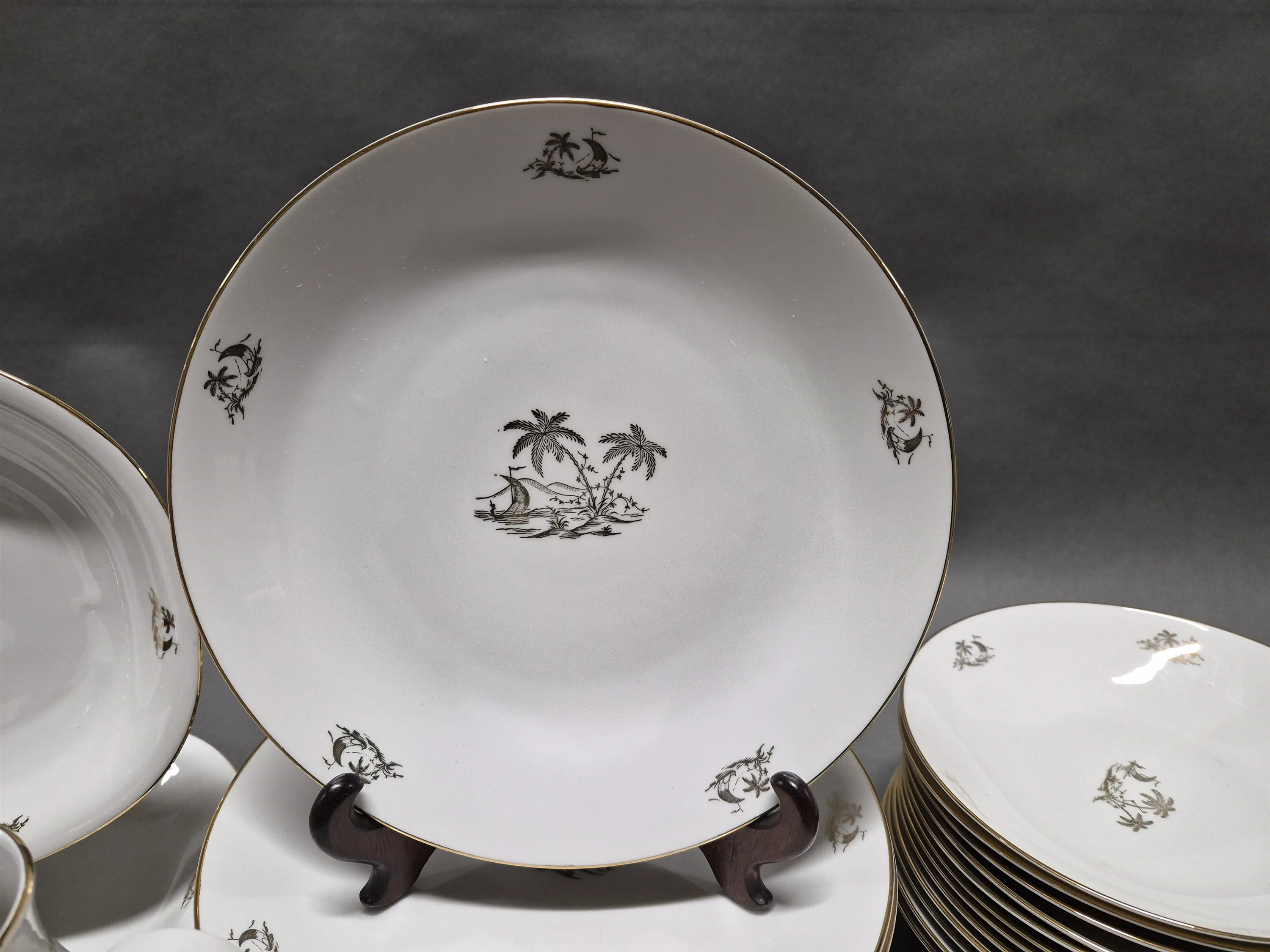 16851. Matservis med palmdekor, längsta mått 36 cm, 2 lådor