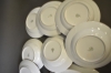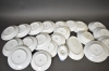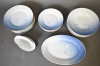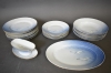 11079. Matservisdelar "Måsen" Bing & Gröndal, 4 tallrikar Kunglig Dansk guldkant, längsta 34 cm