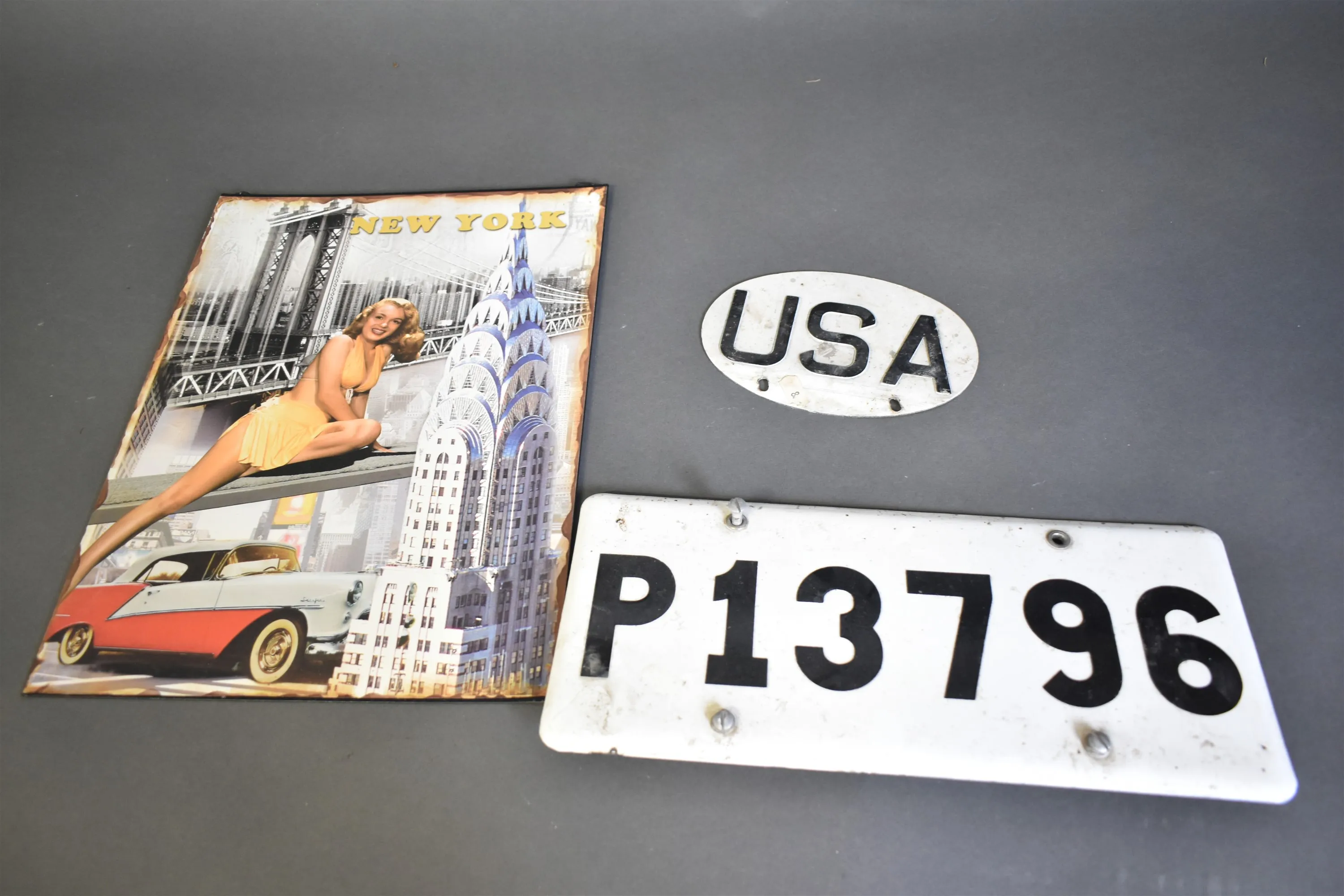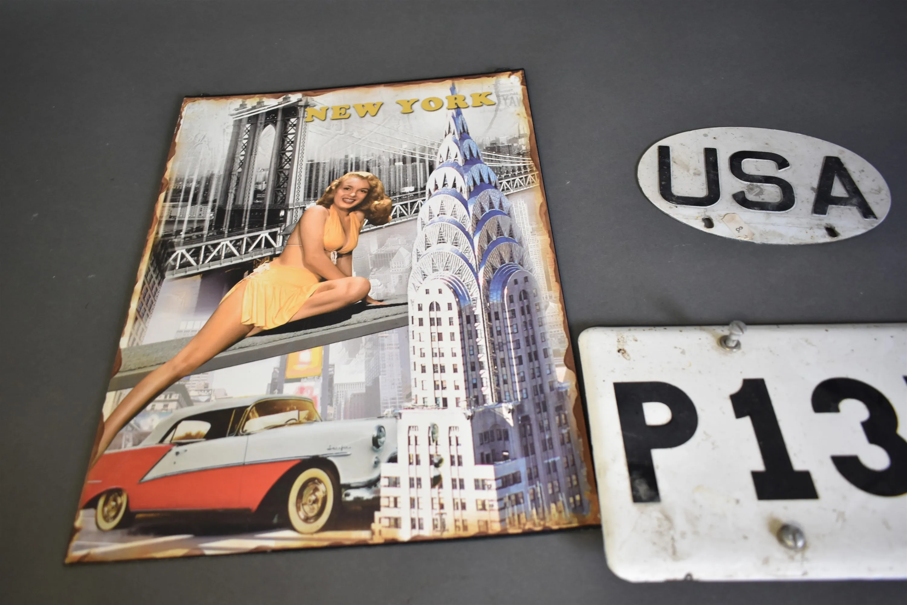 3933. Metallskyltar 3 st största 40 cm x 30 cm