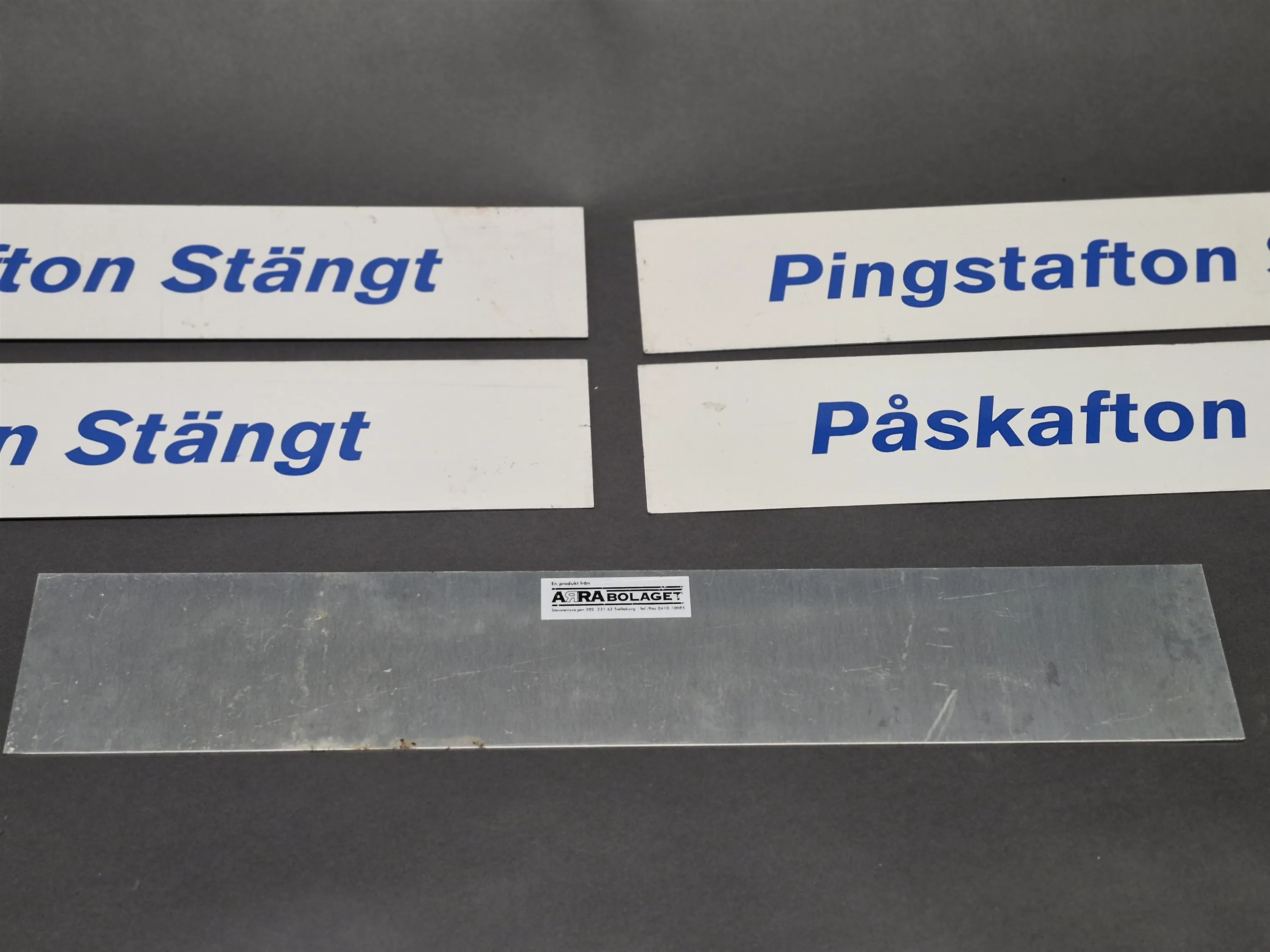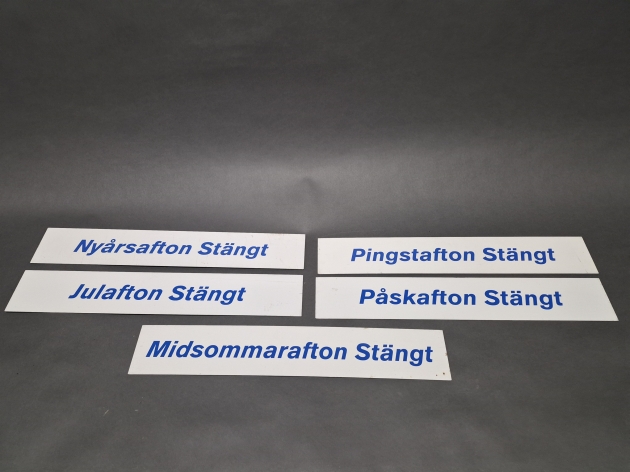 17890. Metallskyltar 5 st, bl.a Julafton Stängt, mått på skyltar 60 x 10 cm