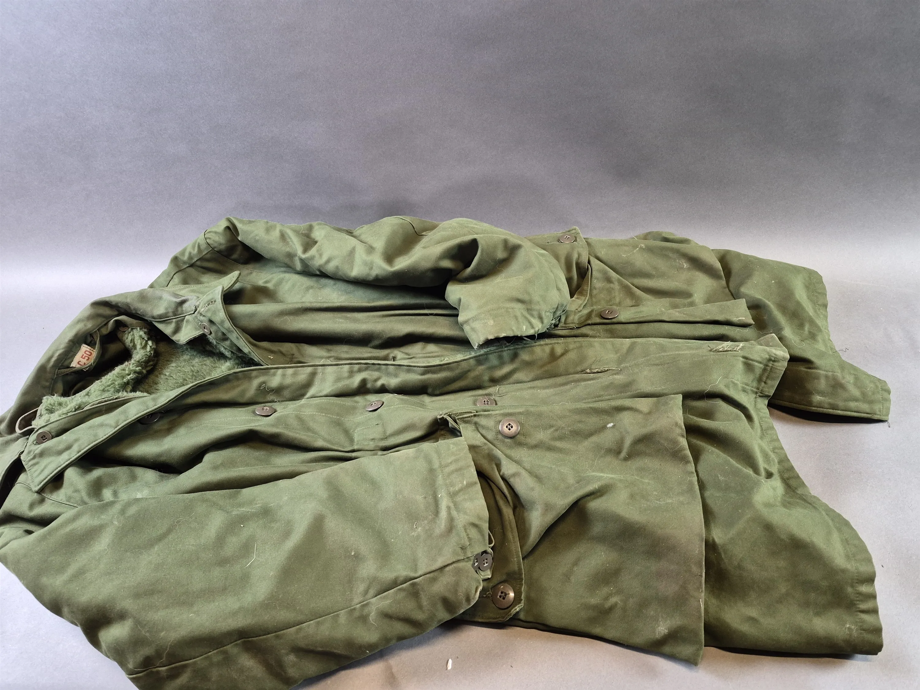 20003. Militärjacka med avtagbat foder strl C50, mindre djurhår och fläckar finns