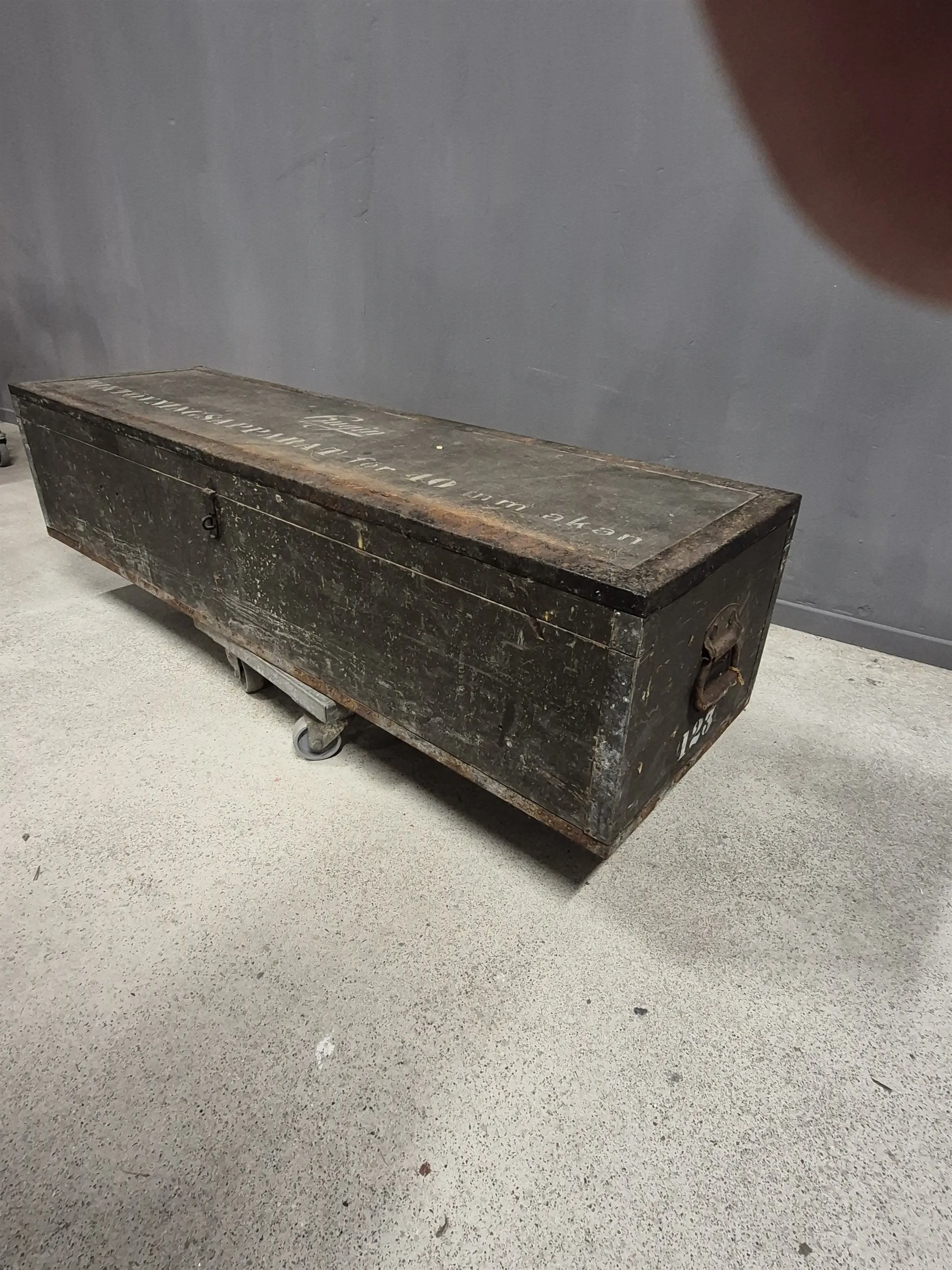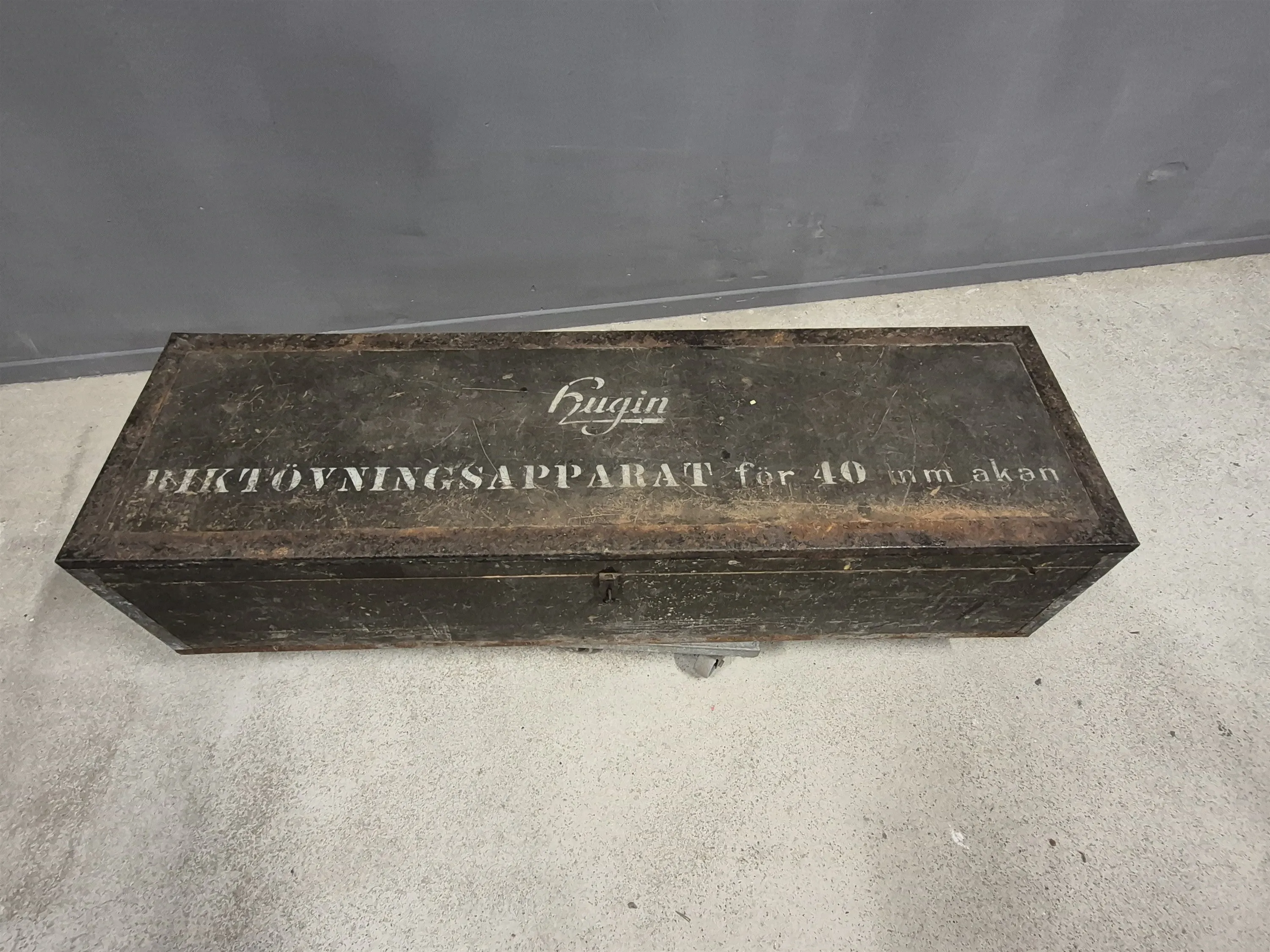 17008. Militärlåda Hugin Riktövningsapparat längd 137 cm, bredd 37 cm, höjd 31 cm
