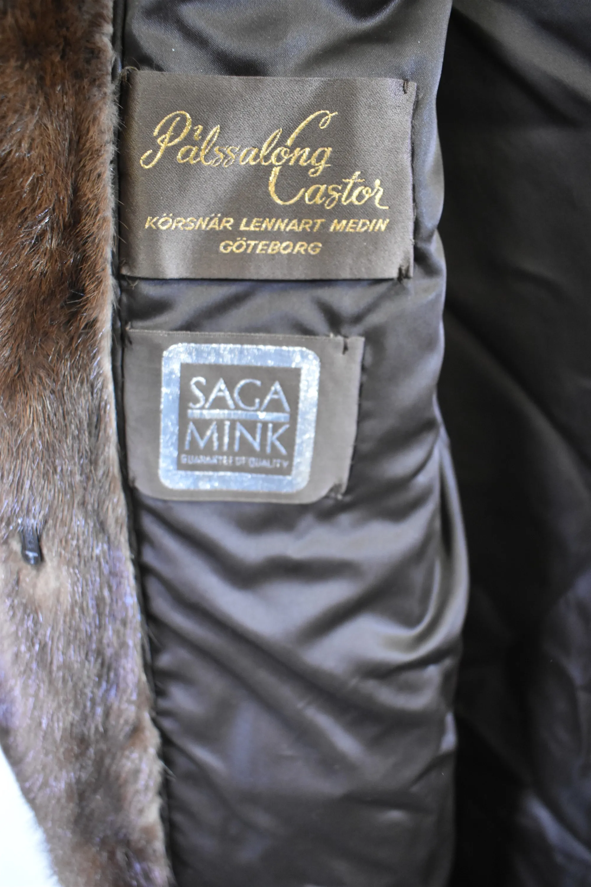 13577. Minkpäls med huva, Saga Mink