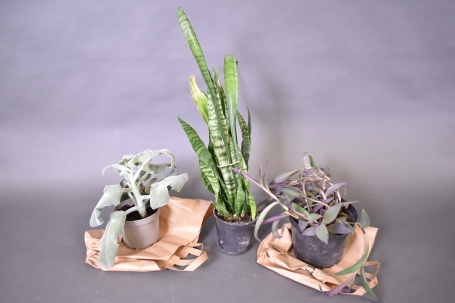6555. Moccapalm, Purpurblad & Svärmorstunga högsta 70 cm