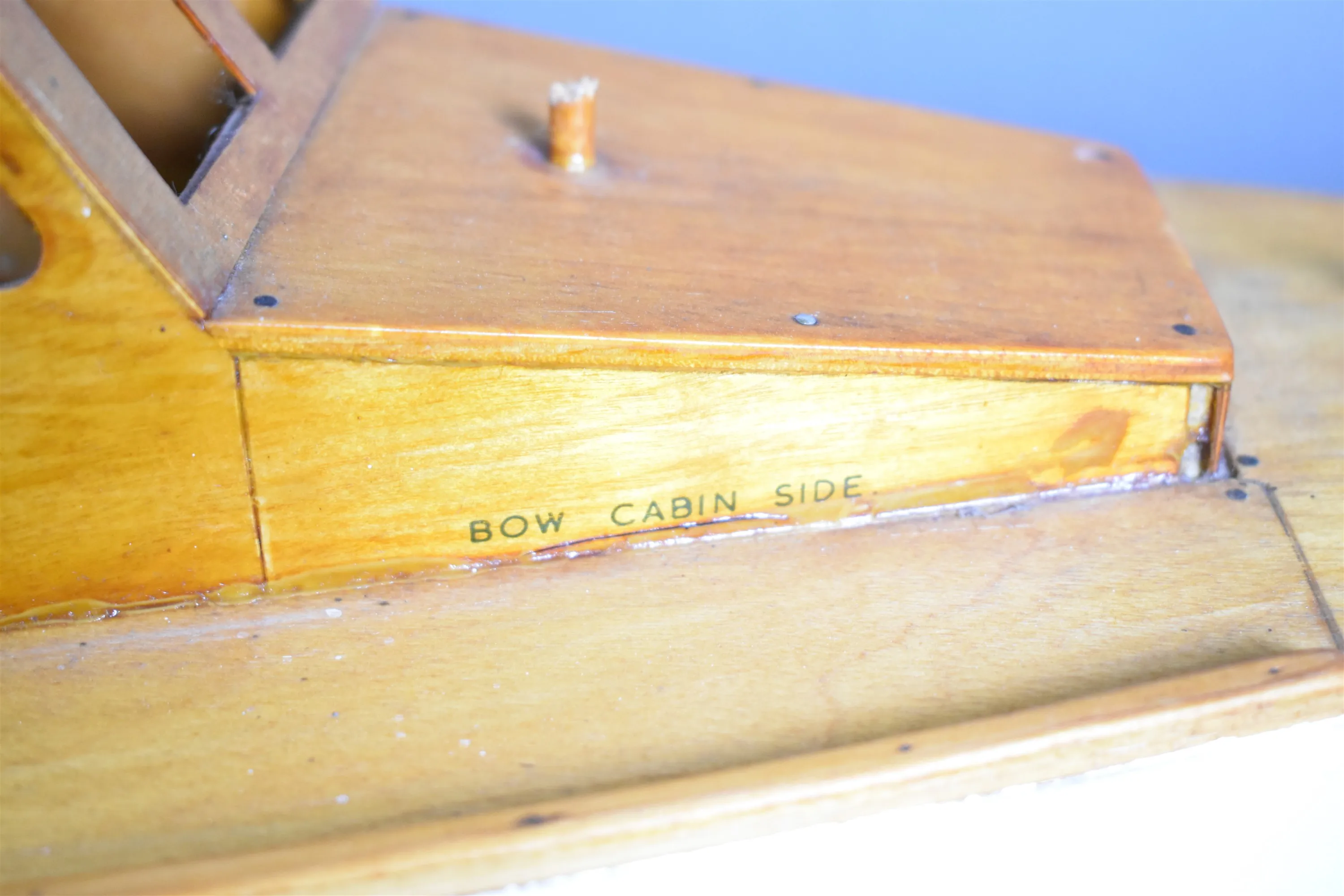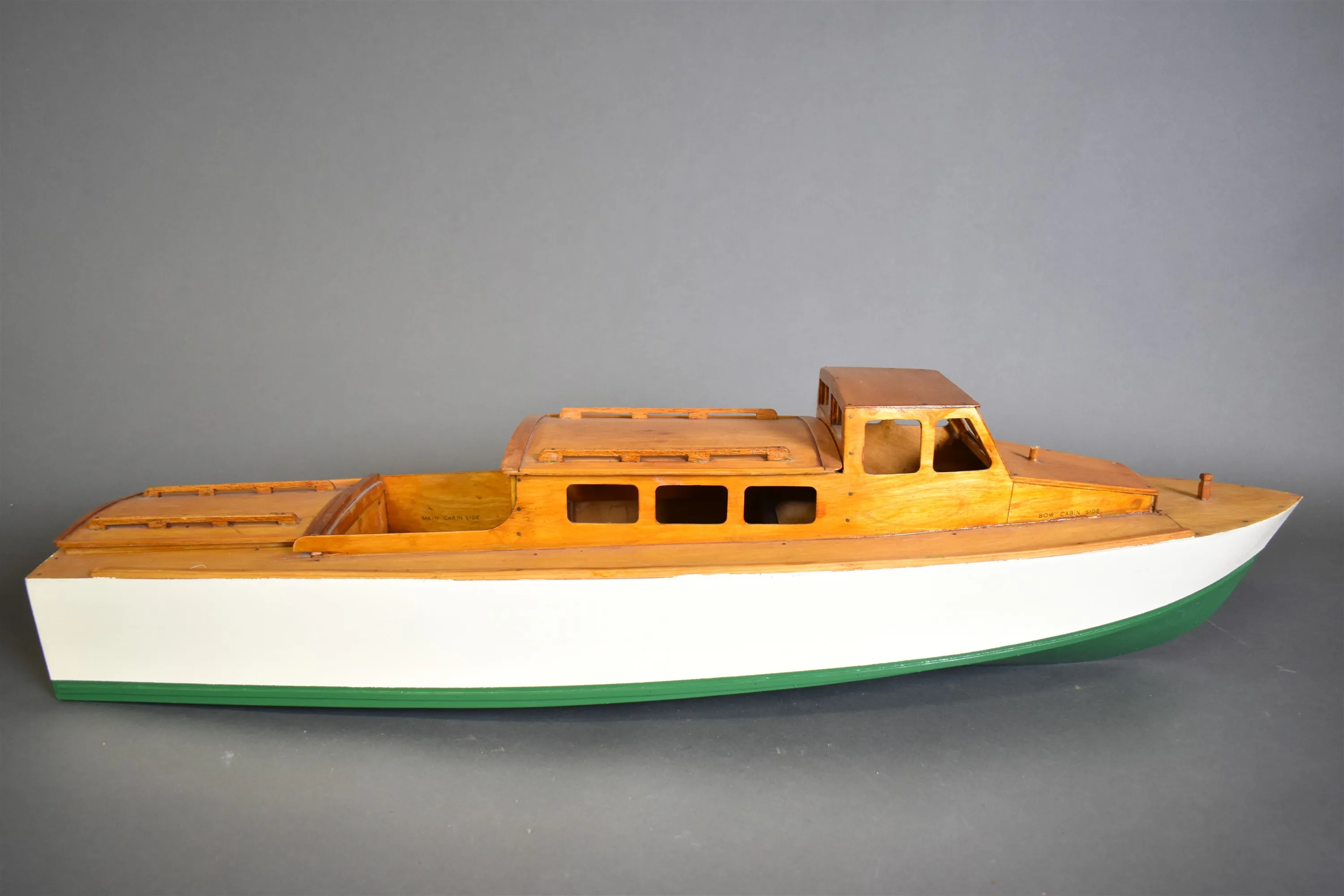 11157. Modellbåt i trä, längd 89 cm