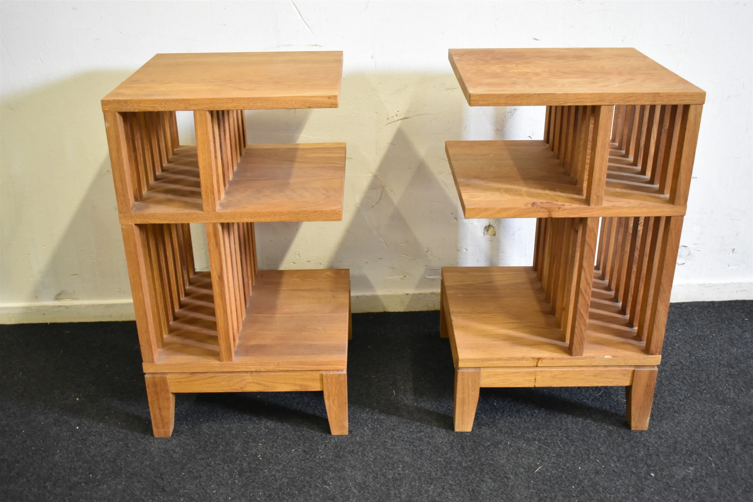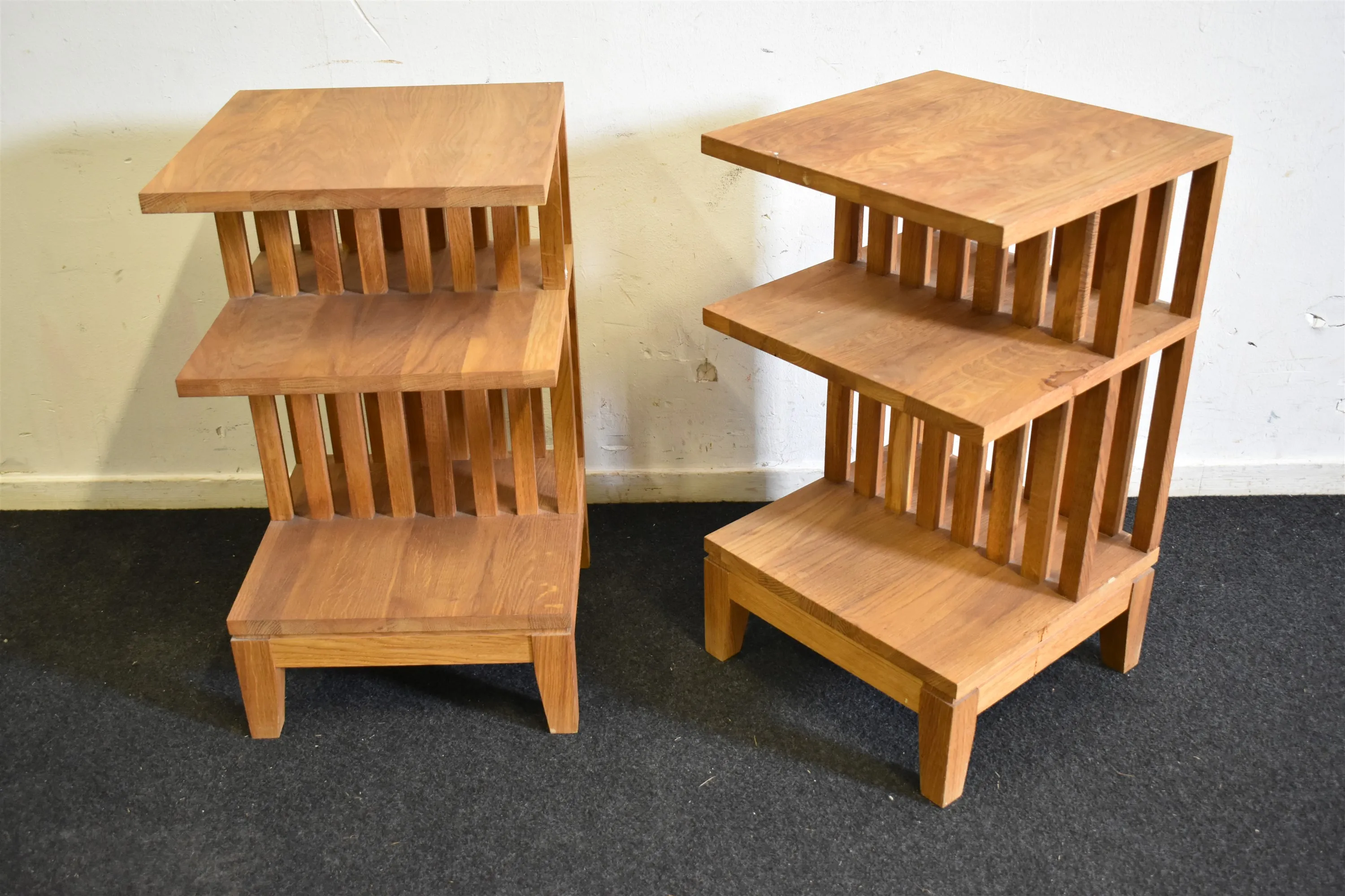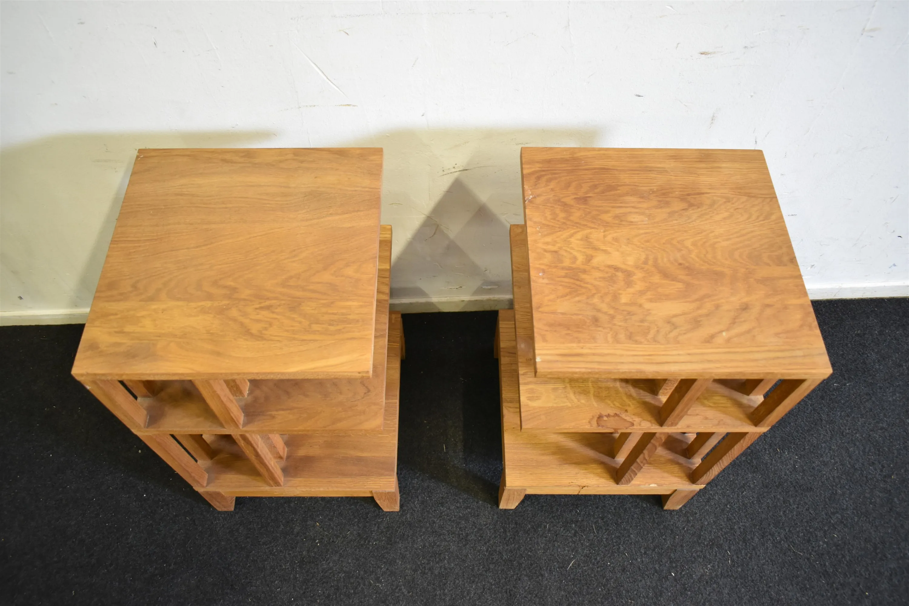 16136. Nattygsbord, stavlimmad ek, 1 par, höjd 65 cm mått 37 x 38 cm