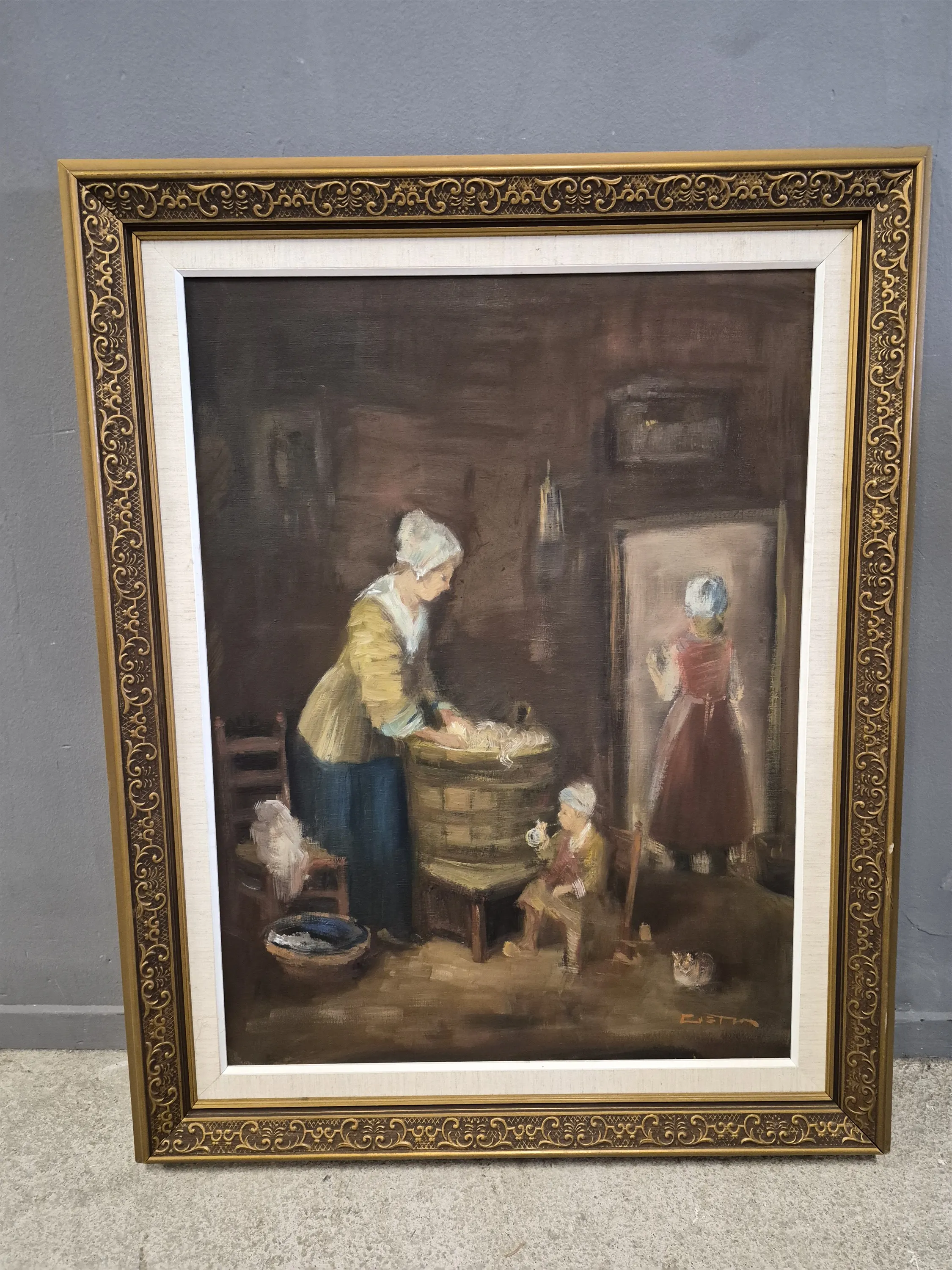20865. Nicolai Coster olja på duk, "Tvättande kvinna", mått 102x79 cm