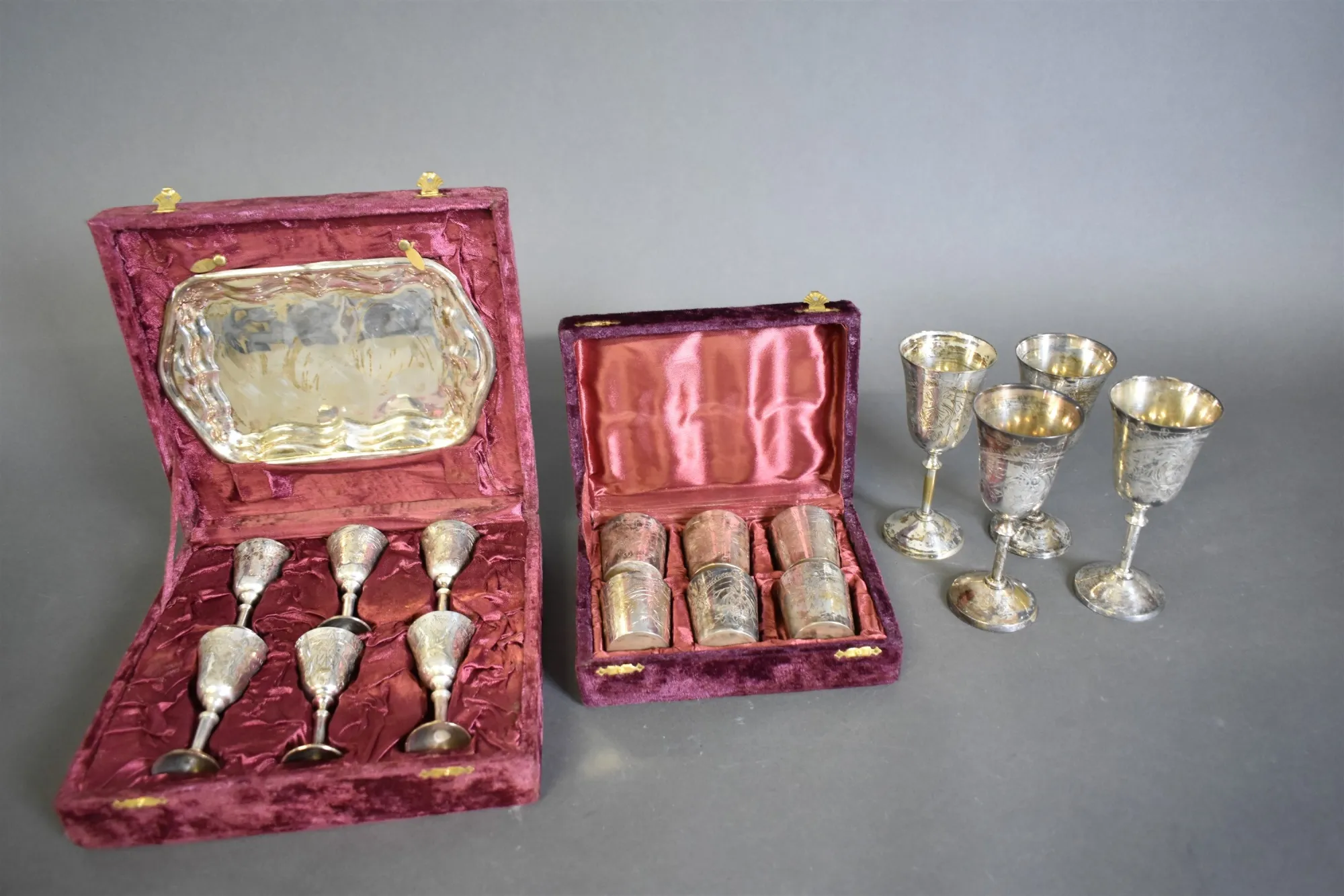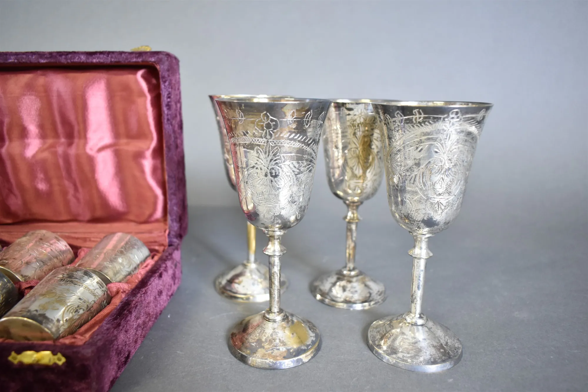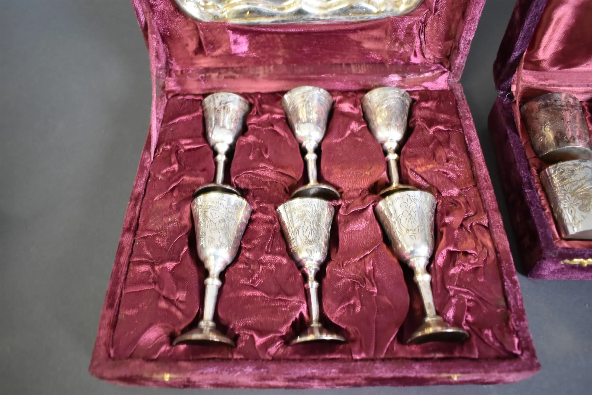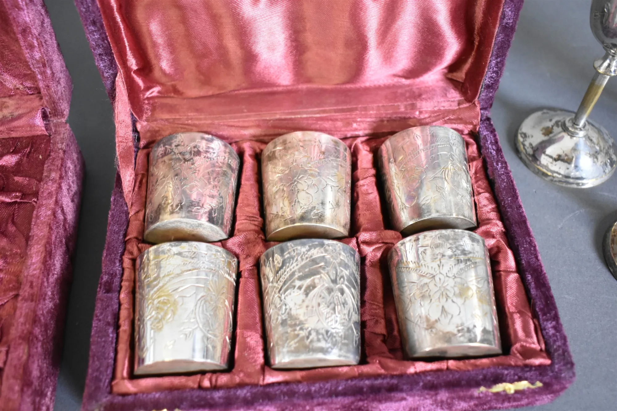13474. Nysilverbägare bla i etui, längd på längsta etui 26 cm
