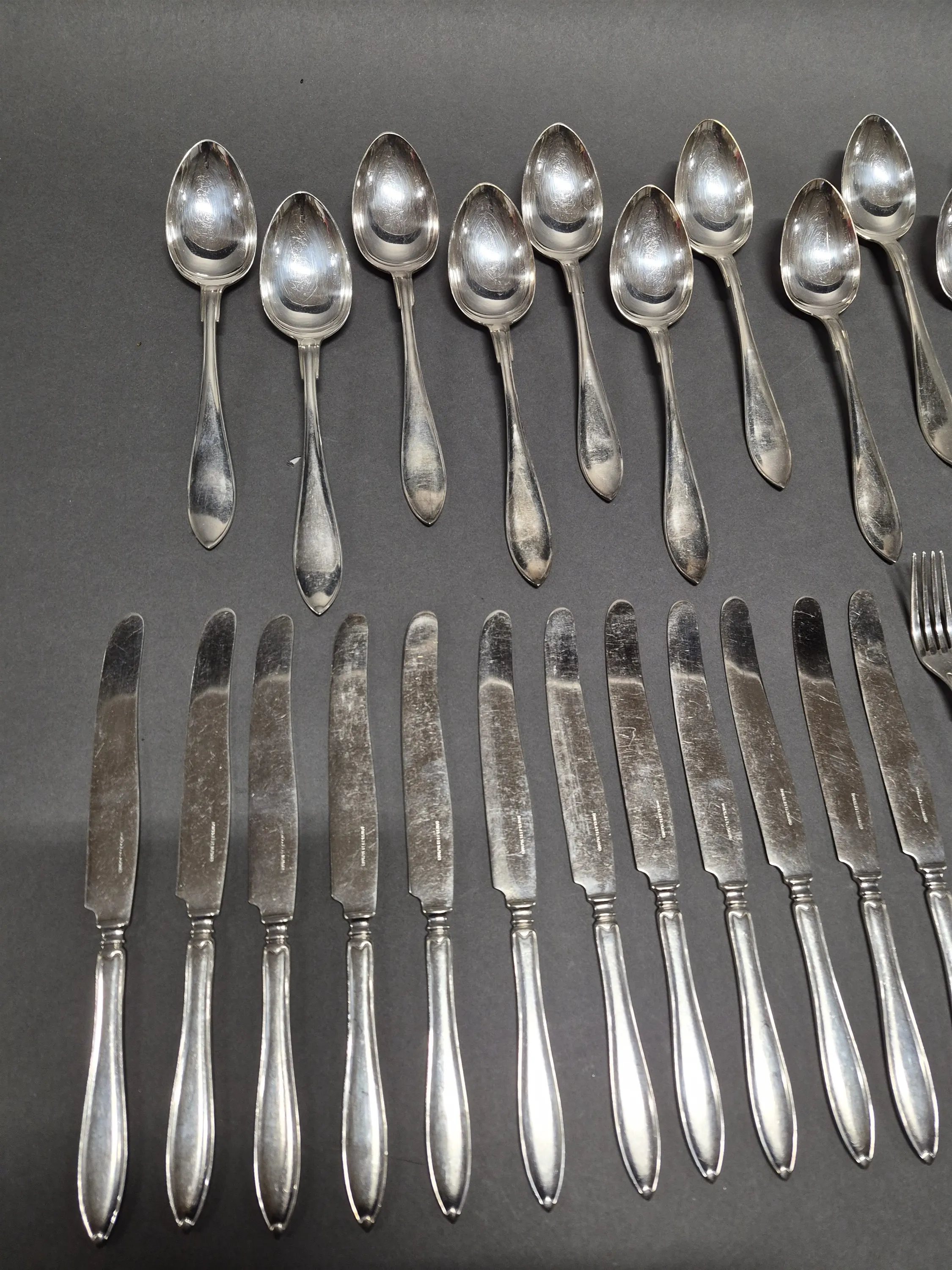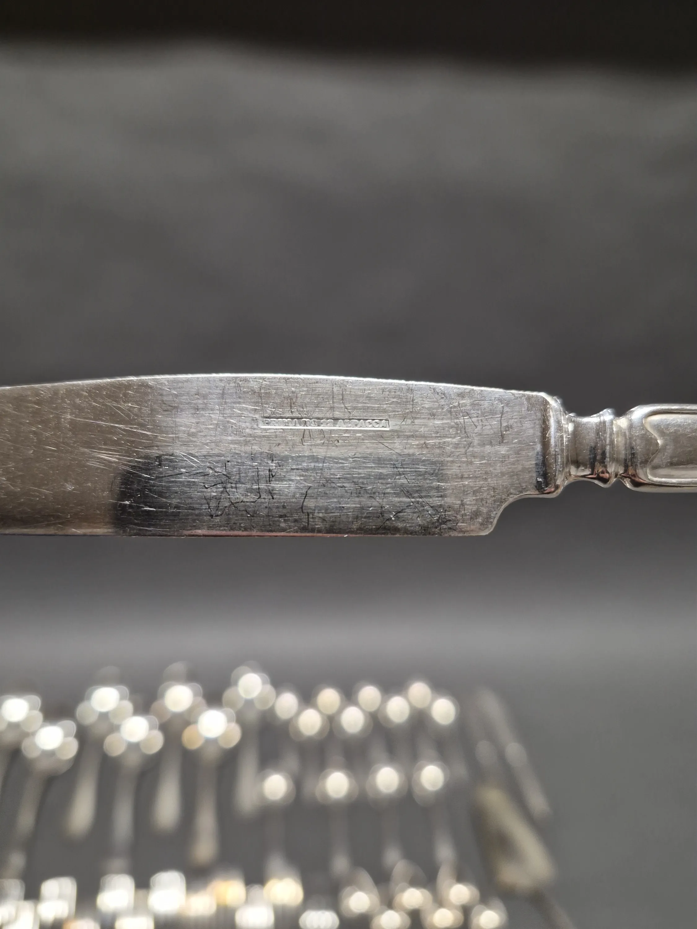 17291. Nysilverbestick, längsta mått 24 cm