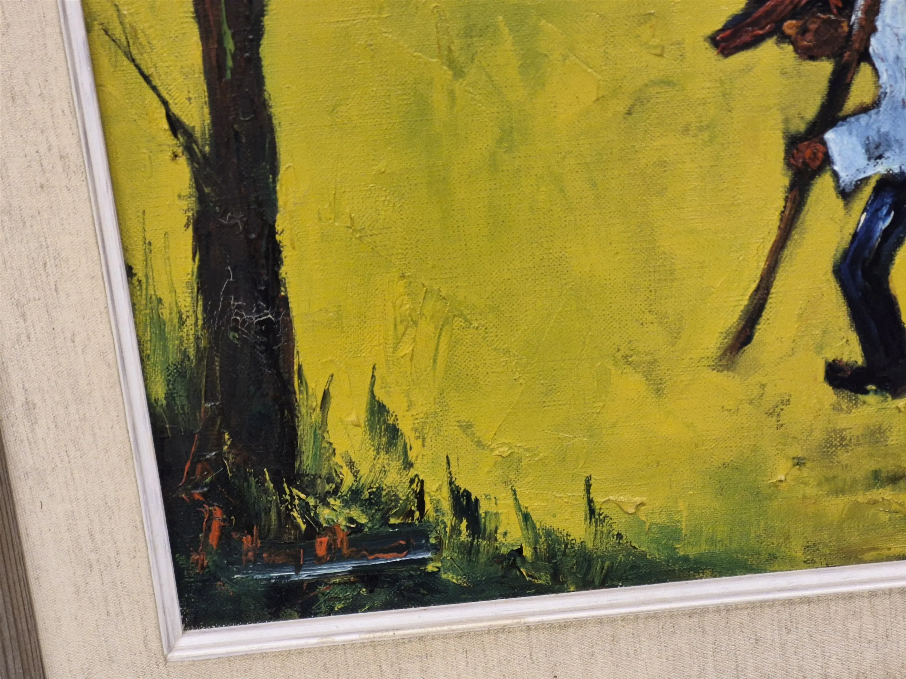 19014. Olja på duk, resande mexikaner, signerad, yttermått 78x59 cm