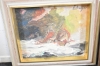 11773. Olja på pannå 2 st bla skepp på stormigt hav, signerade, största mått 62x49 cm