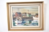2125. Olja på pannå, signerad, hamnmotiv, mått 69x55 cm