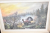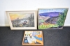 11733. Oljor på duk 3 st bla Brandstedt "Tjäder", största mått 71x65 cm