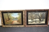 11722. Oljor på duk 2 st, naturmotiv, största mått 88x70 cm