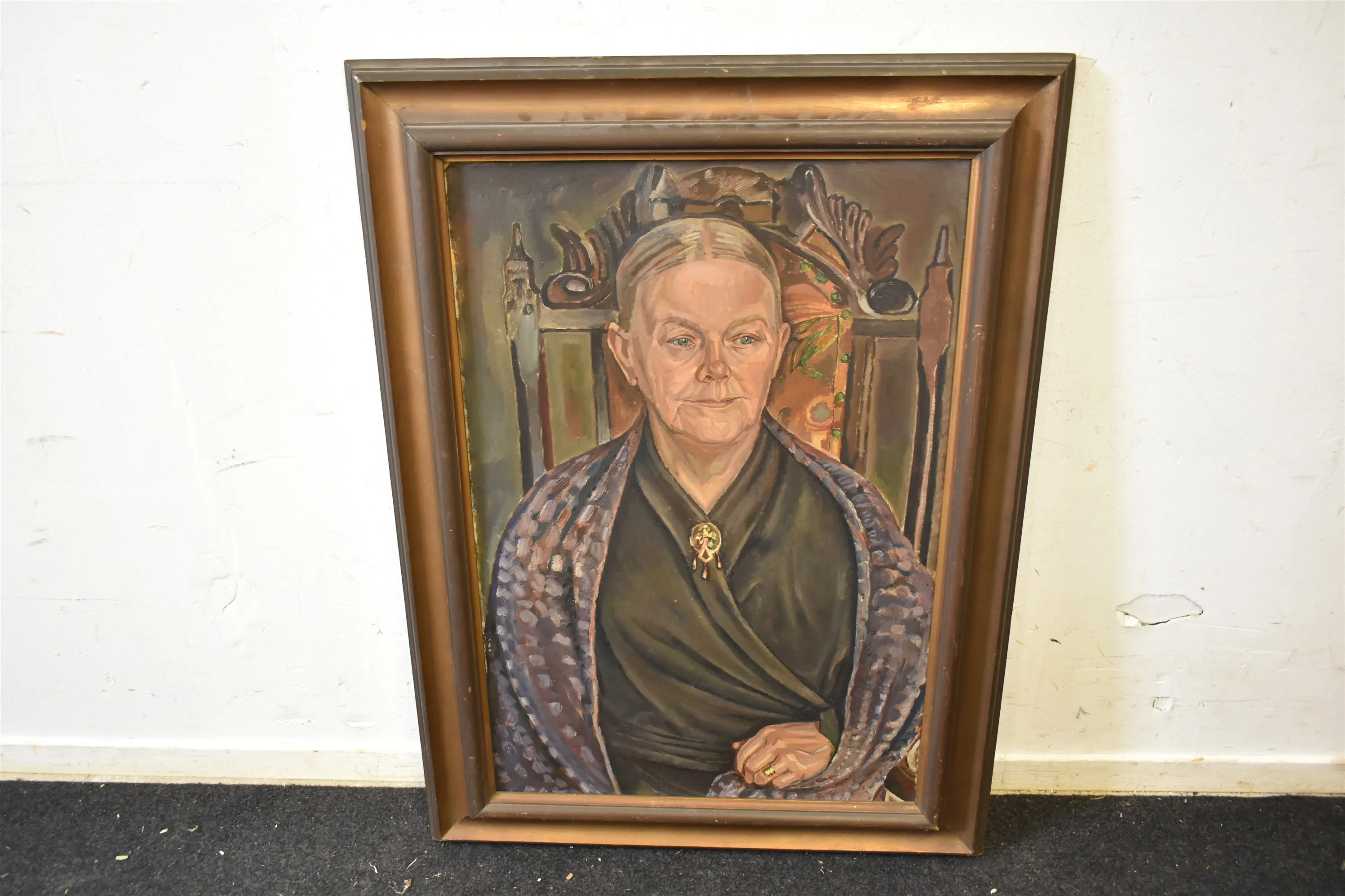 14120. Osignerad olja på duk, "Äldre dam", mått 69 x 93 cm