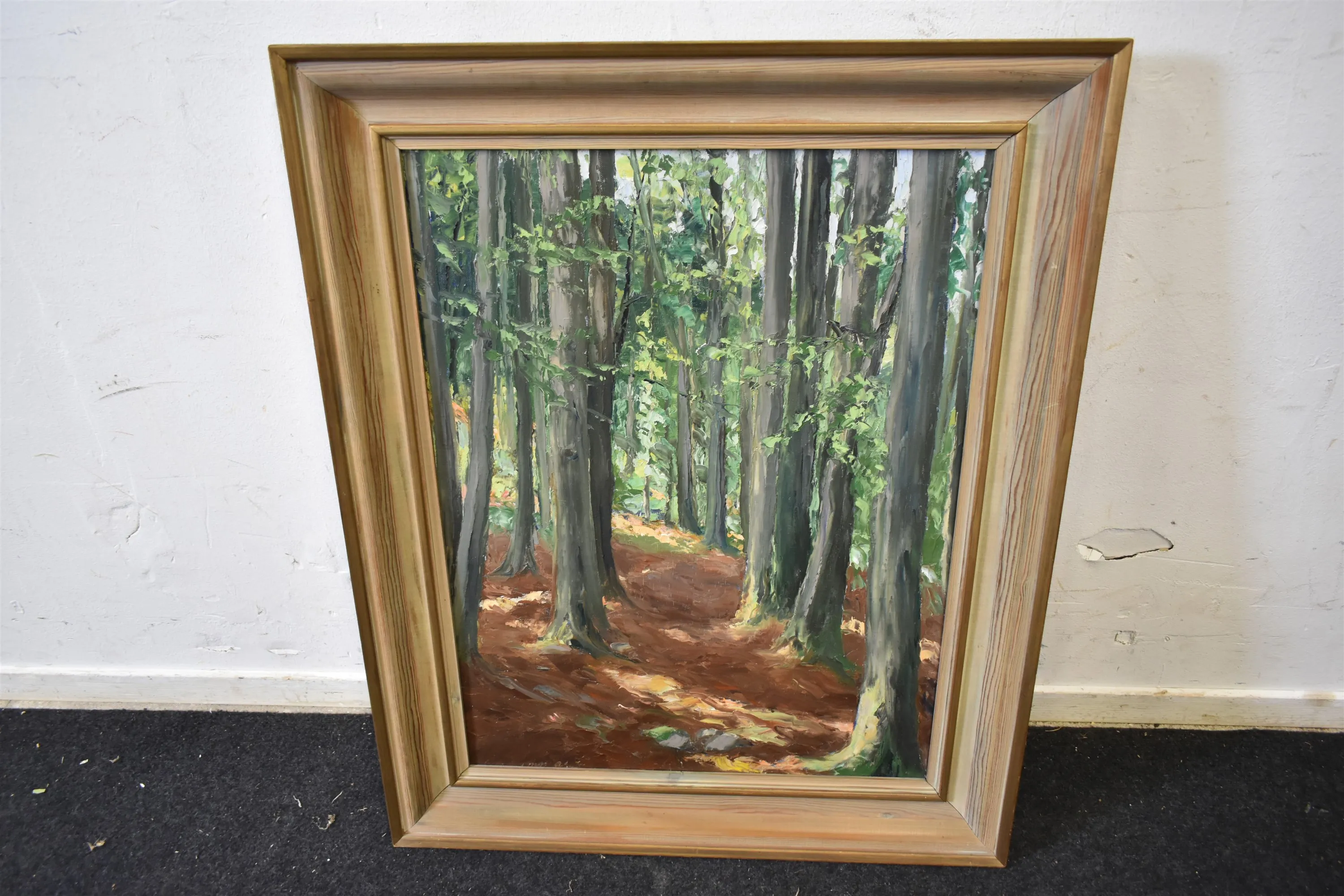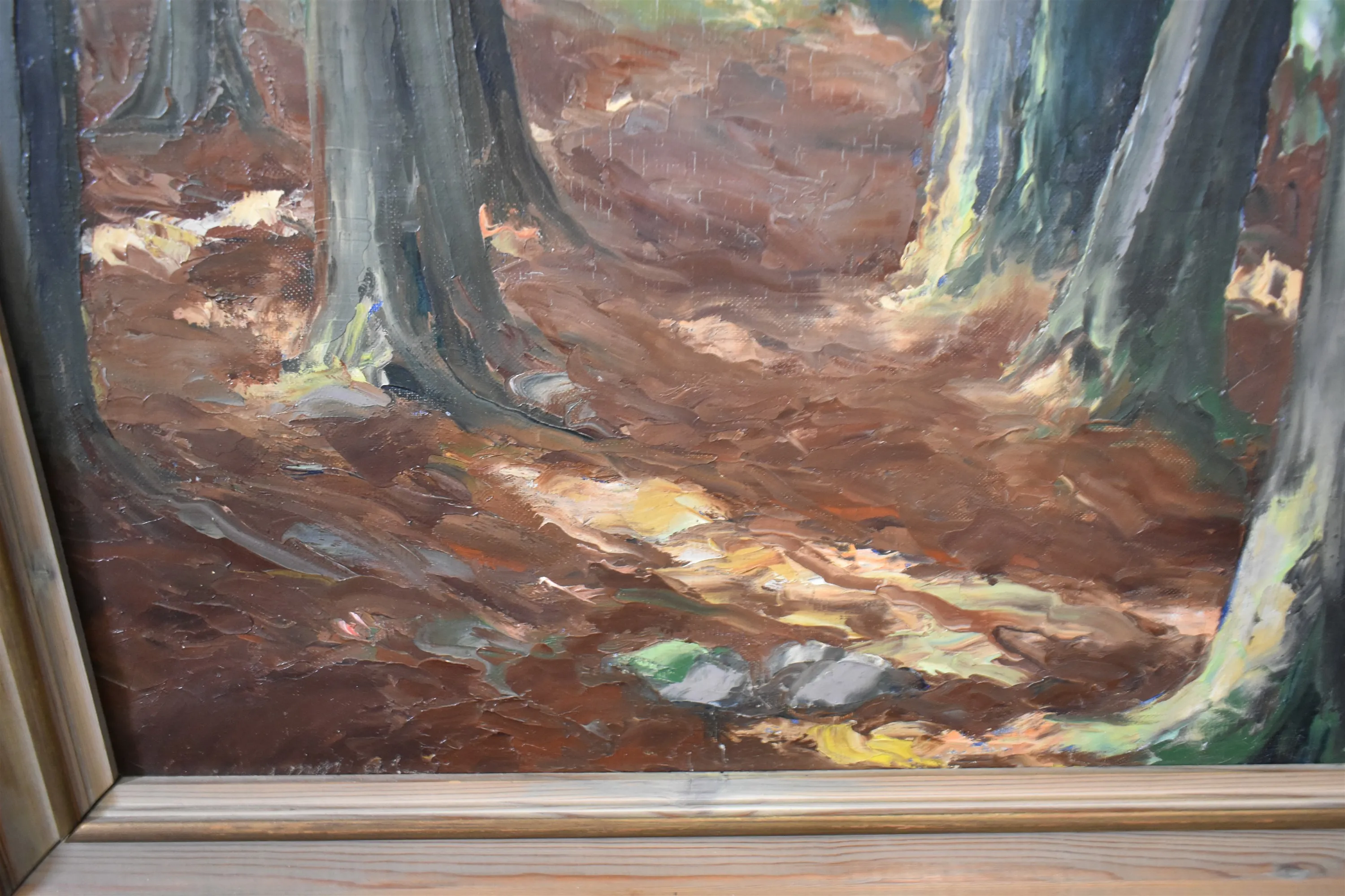 14119. Osignerad olja på duk, Skogsmotiv, mått, 69 x 86 cm