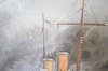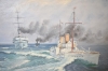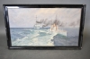 6363. Osignerad olja på pannå, "Krigsbåtar" mått 46 x 78 cm, skav finns på ram & pannå