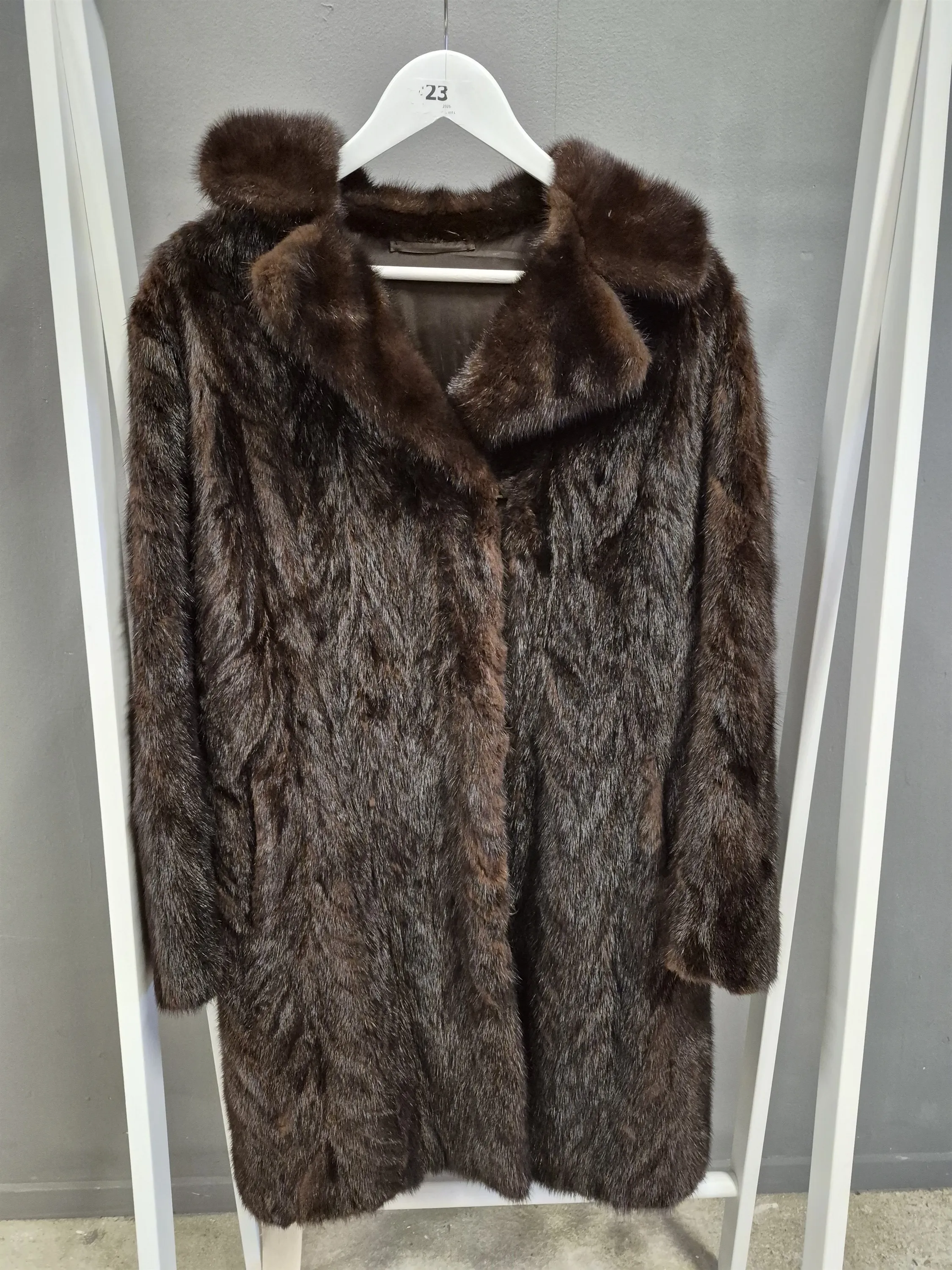 17862. Pälskappa mink strl 38, längd 98 cm