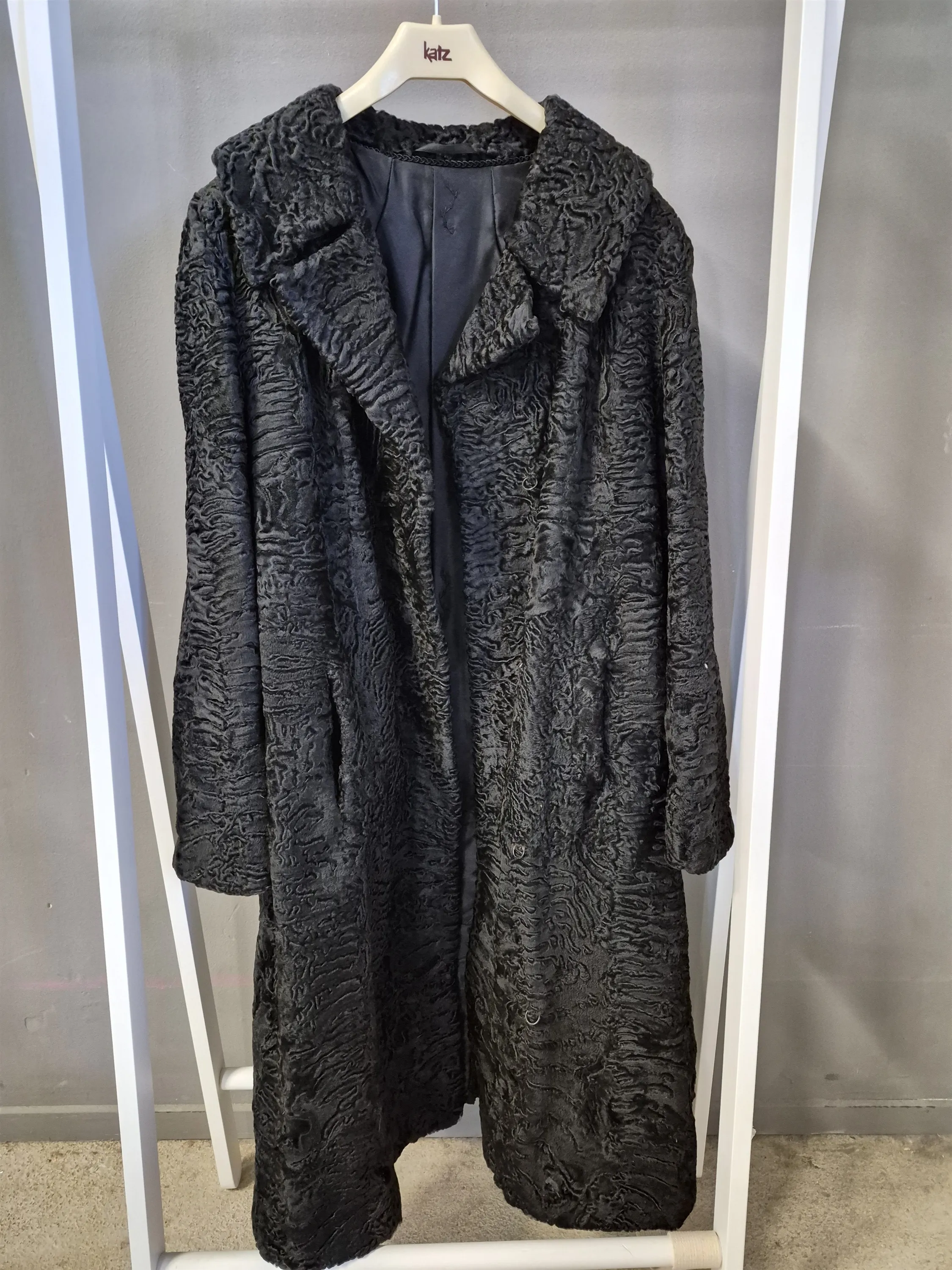 19666. Pälskappa, okänd storlek, längd 117 cm